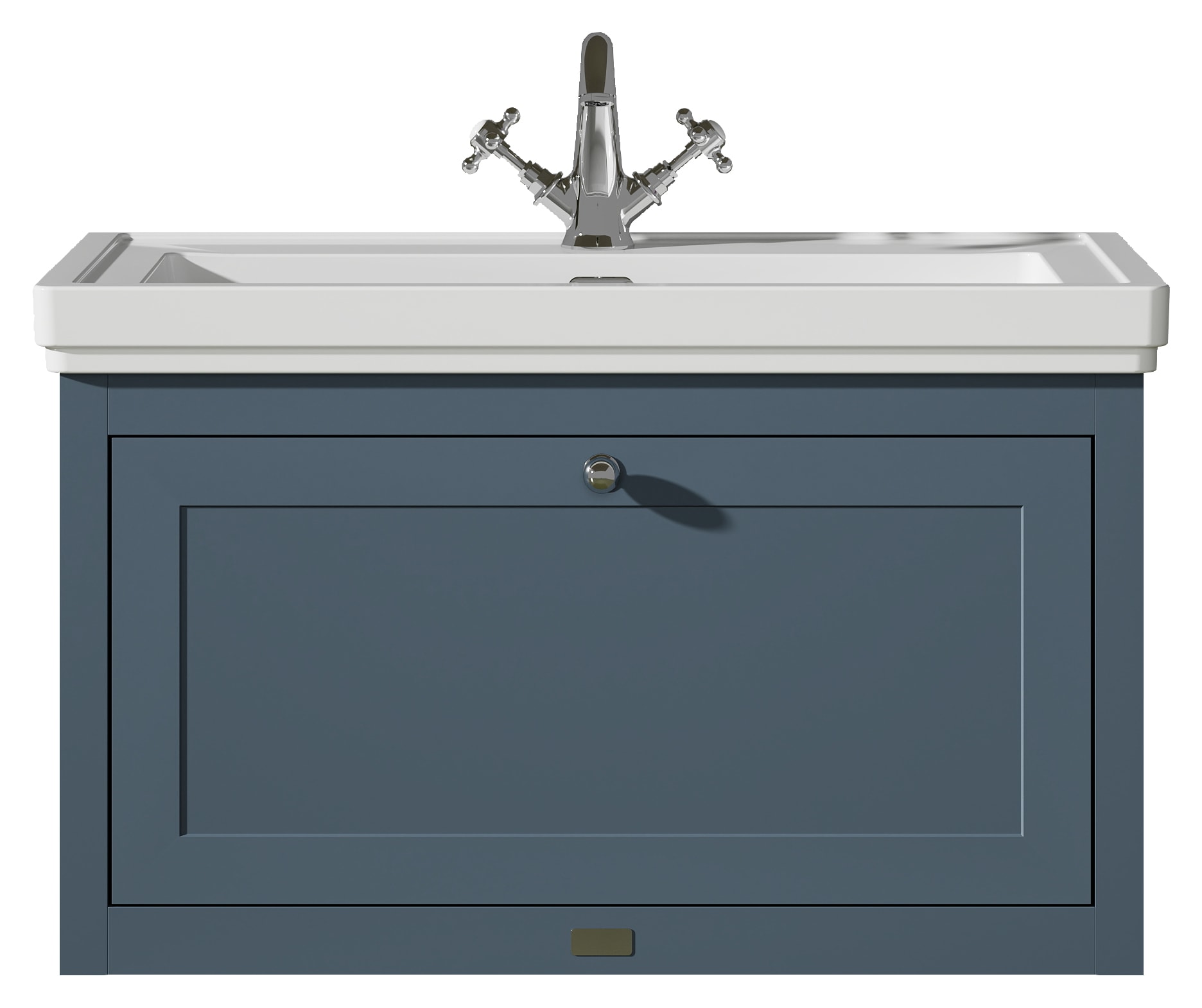 Bayswater Hartleigh Stiffkey Blue Traditional Wall Hung Vanity Unit & 1 Tap Hole Traditional Recessed Basin - 800mm