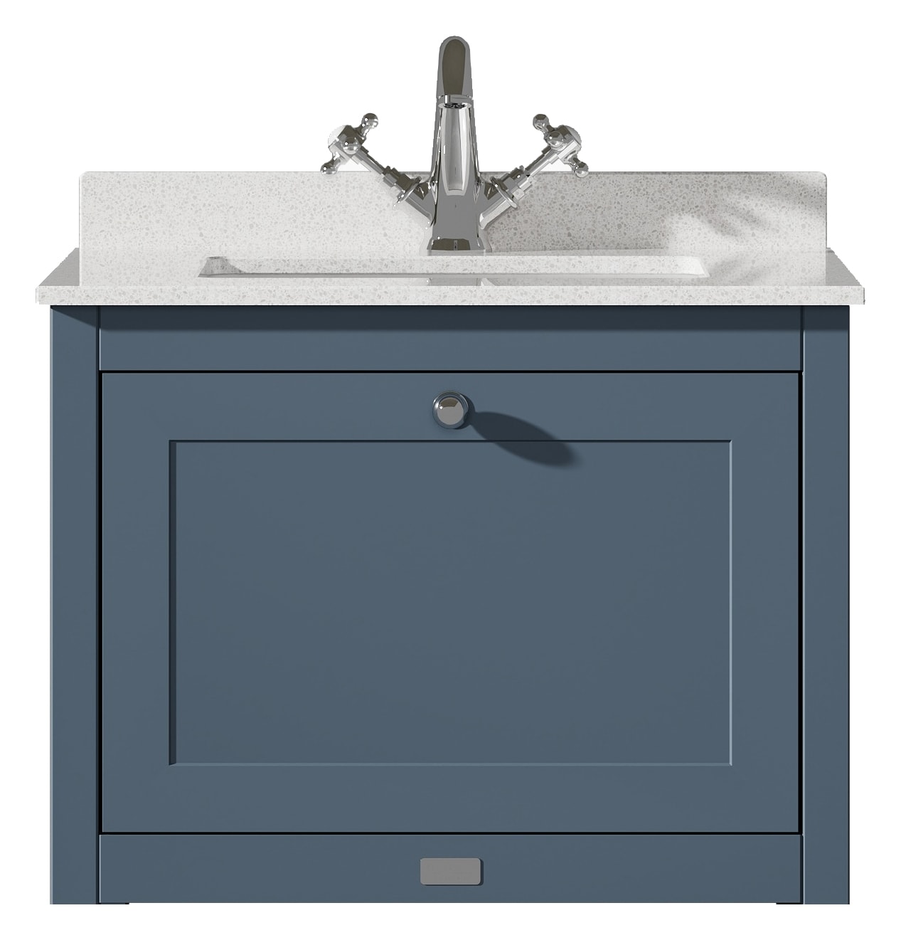 Bayswater Hartleigh Stiffkey Blue Traditional Wall Hung Vanity Unit & 1 Tap Hole White Marble Top Basin - 600mm