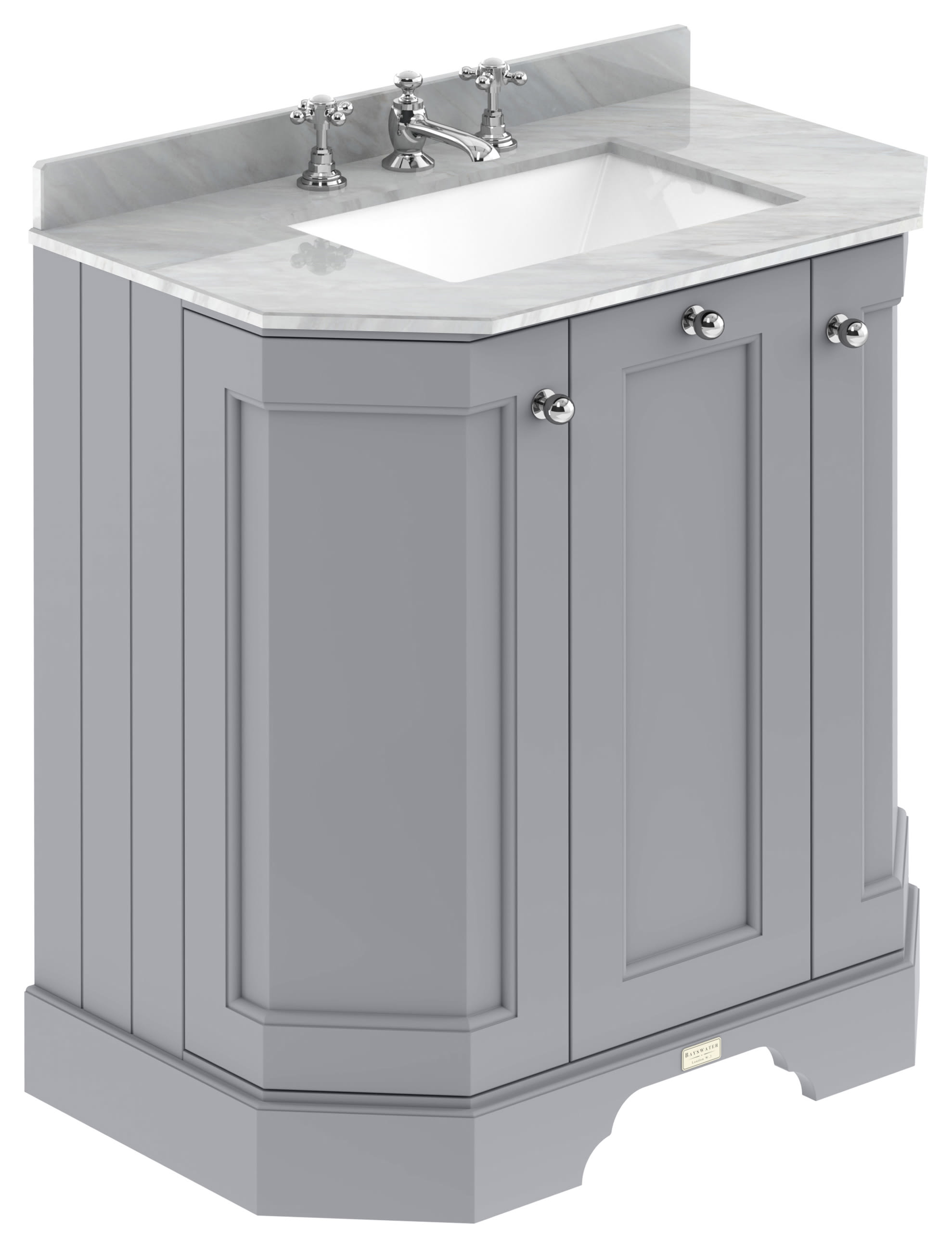 Bayswater Victrion Plummett Grey Angled Traditional Freestanding Vanity Unit & Grey Marble Top Basin - 750mm