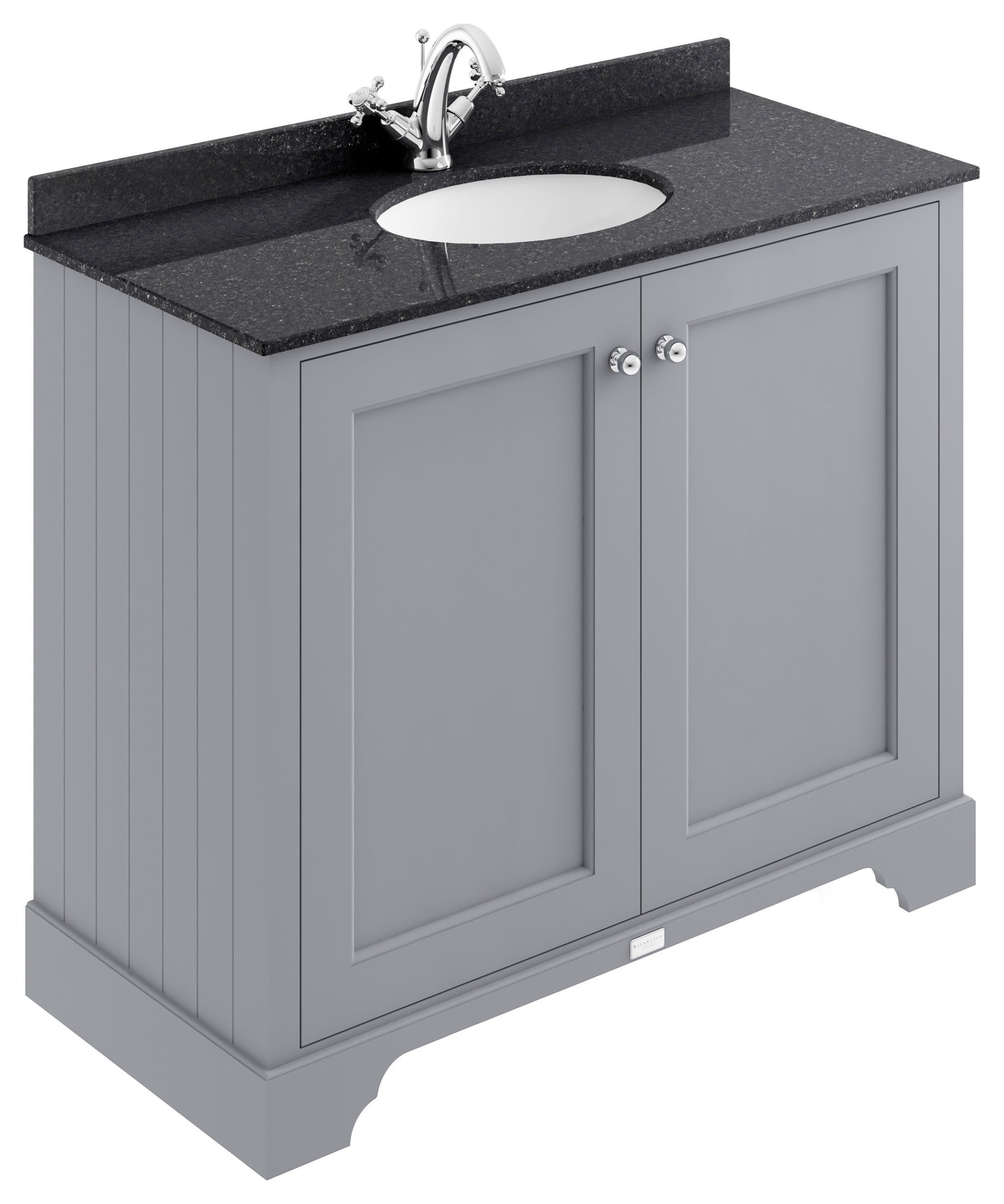 Bayswater Victrion Plummett Grey Traditional Freestanding Vanity Unit & Black Marble Top Basin - 1000mm
