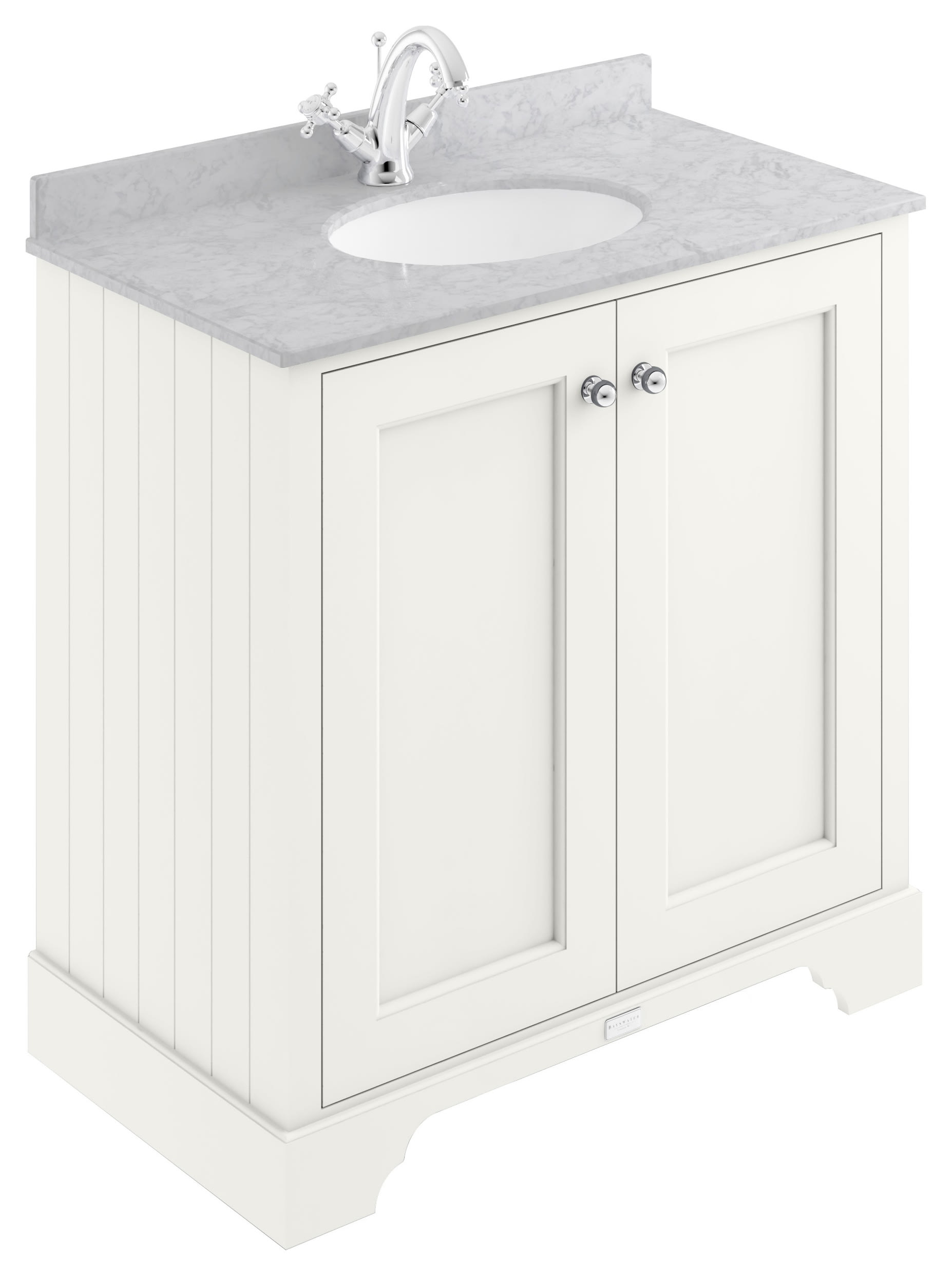 Bayswater Victrion Pointing White Traditional Freestanding Vanity Unit & Grey Marble Top Basin - 800mm