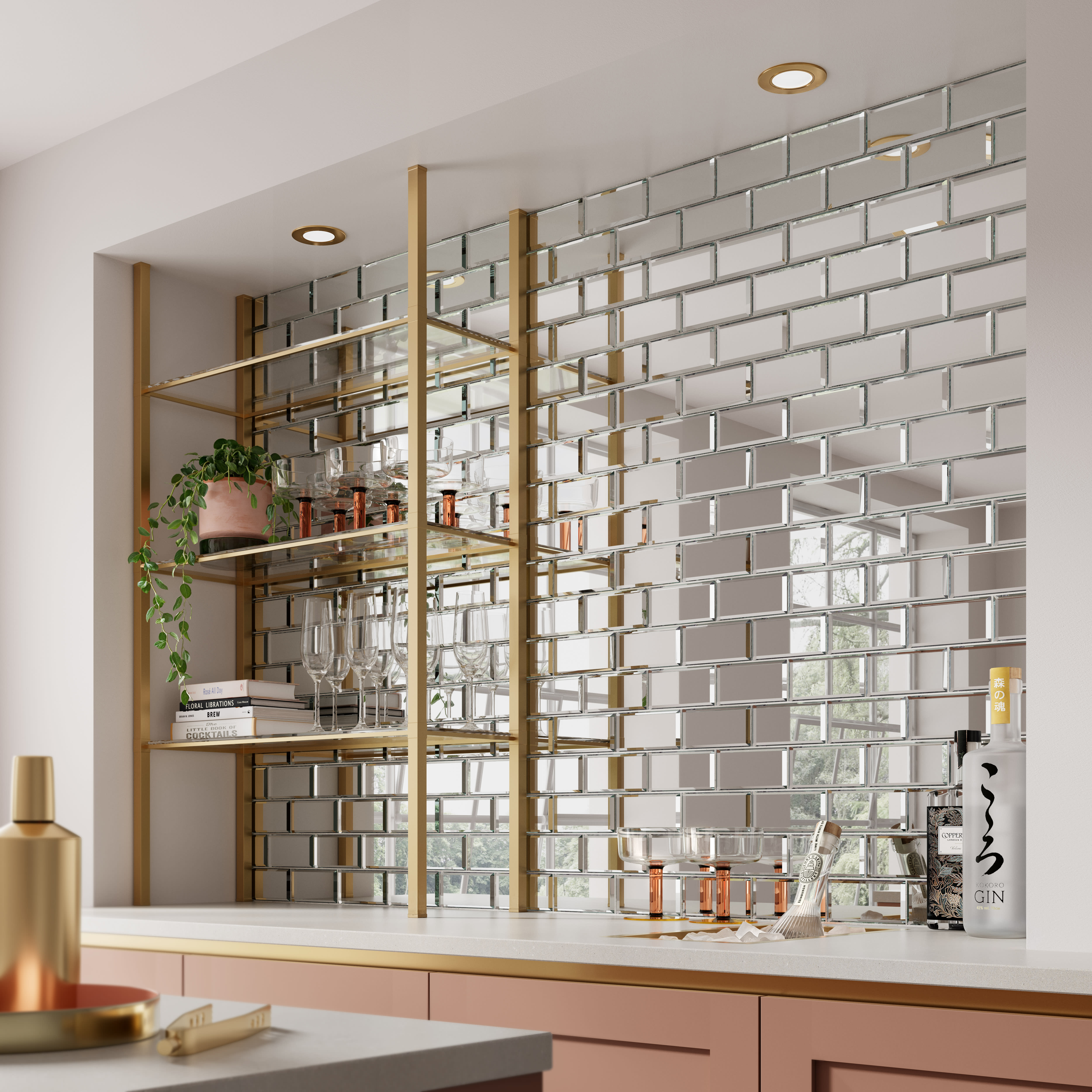 - Mirrored glass reflects light to create a sense of openness