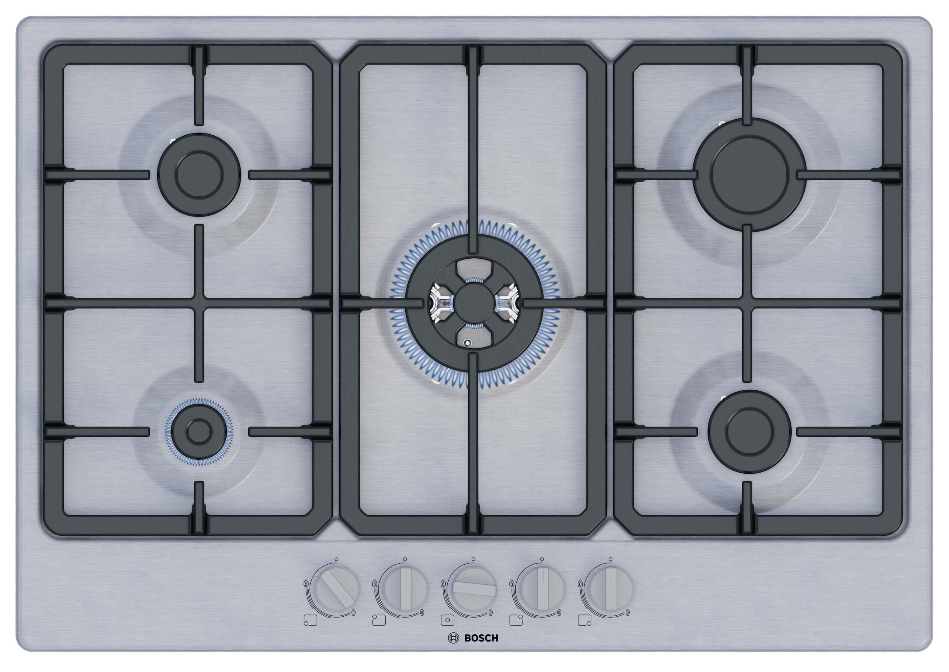 Bosch Series 4 PGQ7B5K90 Gas Hob 75cm - Stainless Steel