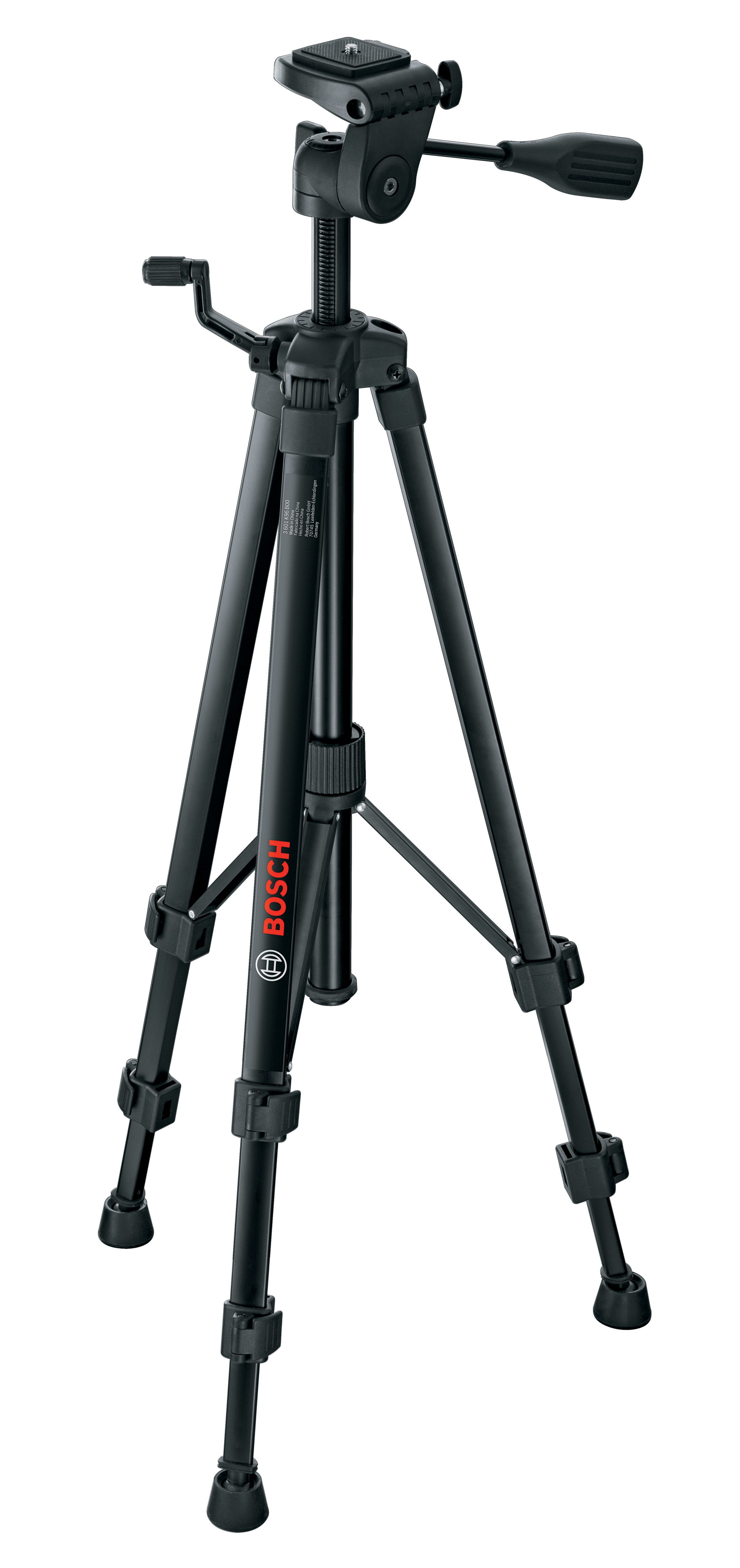 Continuously height adjustable between 52 & 147cm, the TT 150 Telescopic Tripod is the ultimate platform for your Bosch Laser Level, combining versatile positioning with secure & stable support. Working height can be fine-tuned & locked in place using the attached hand crank; the tripod's flexible head can also be set at any angle required. Additional stability is provided by the TT 150's rubber feet & firmly locking legs, & an inbuilt bubble level can be used for exact horizontal positioning. Made out of robust & lightweight aluminium, the tripod is difficult to damage & easy to transport. It can be used with the full range of Bosch line & cross line laser levels, & is also suitable for use with cameras with the standard 1/4" thread.