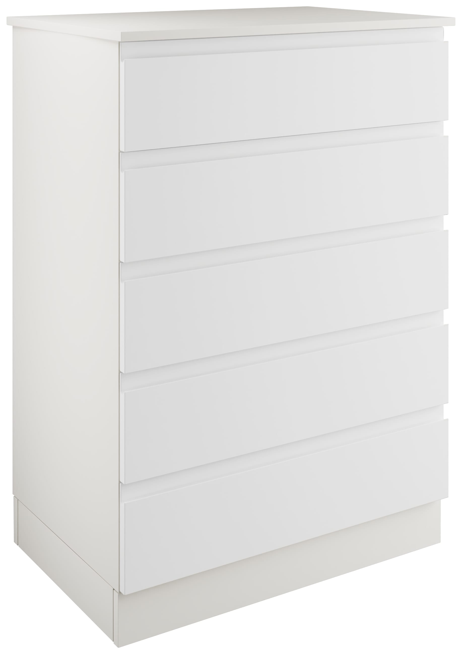Boston Matt White Tallboy Chest with 5 Drawers - 820 x 1136 x 520mm