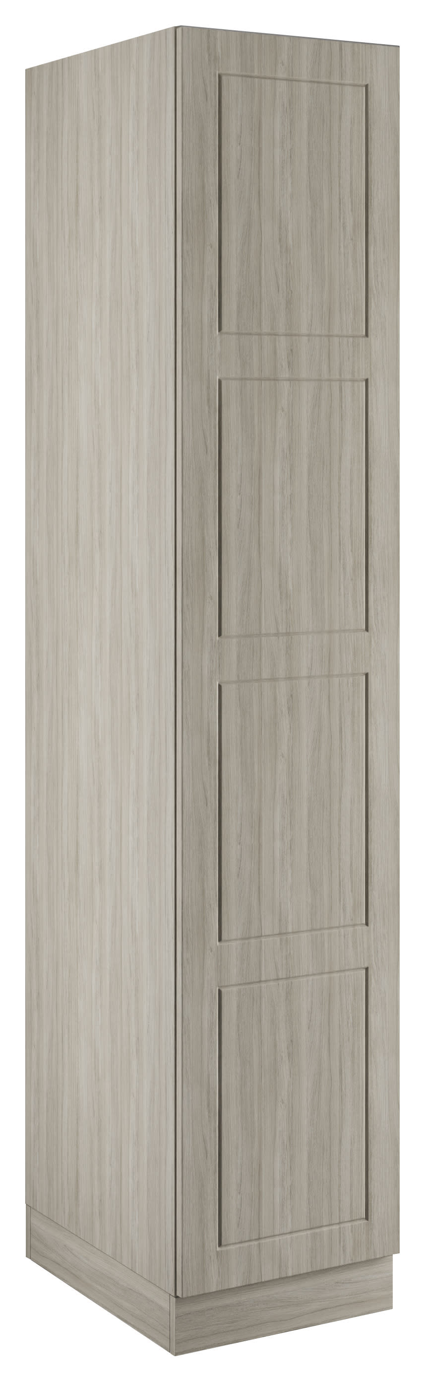 The Bramham urban oak single wardrobe with double rail comes with a MDF 4 panel shaker frontal in a luxurious super matt finish, an urban oak cabinet and soft close hinges. The flatpack quick build cabinet is delivered to a room of your choice. The modular furniture can be used for freestanding purposes or joined together to achieve a built-in look. Everything is manufactured in the UK using sustainably sourced material and comes with a 10 year manufacturer's guarantee. Please note, handles sold separately.