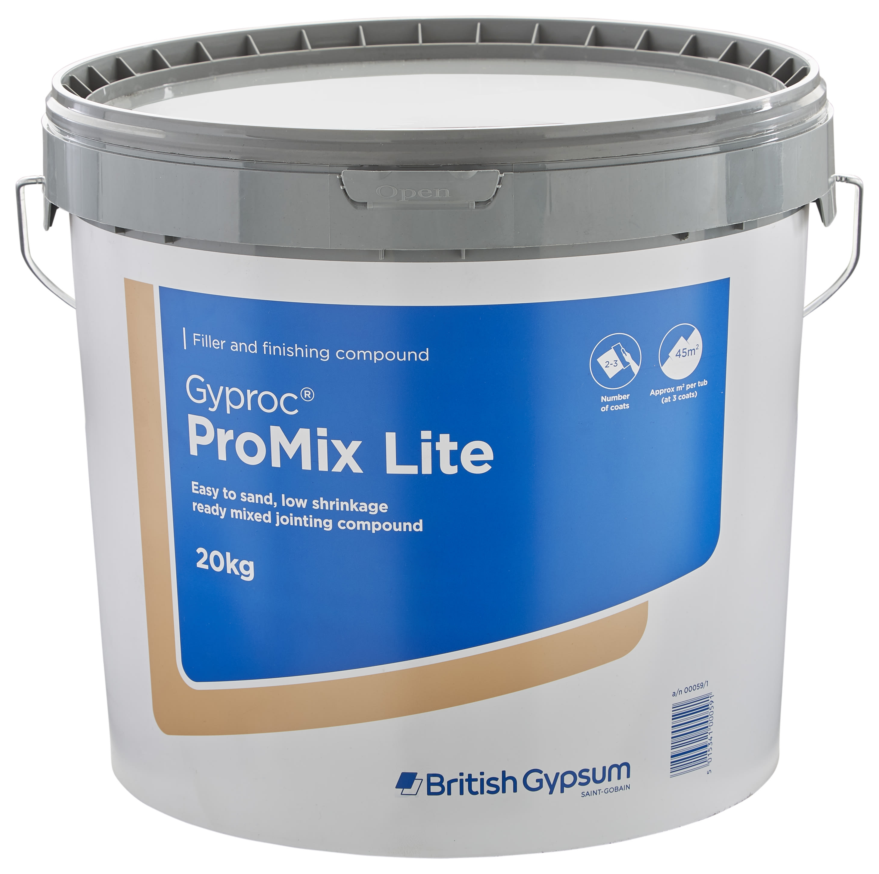 The Gyproc ProMix Lite Joint Cement is a ready-mixed jointing compound which provides a great quality jointed finish. It's ideal to hand apply as a finish over Gyproc Joint Filler, or for all stages of filling and tape bedding using mechanical jointing tools. Because it's ready to use, you don't need to worry about access to water on site.