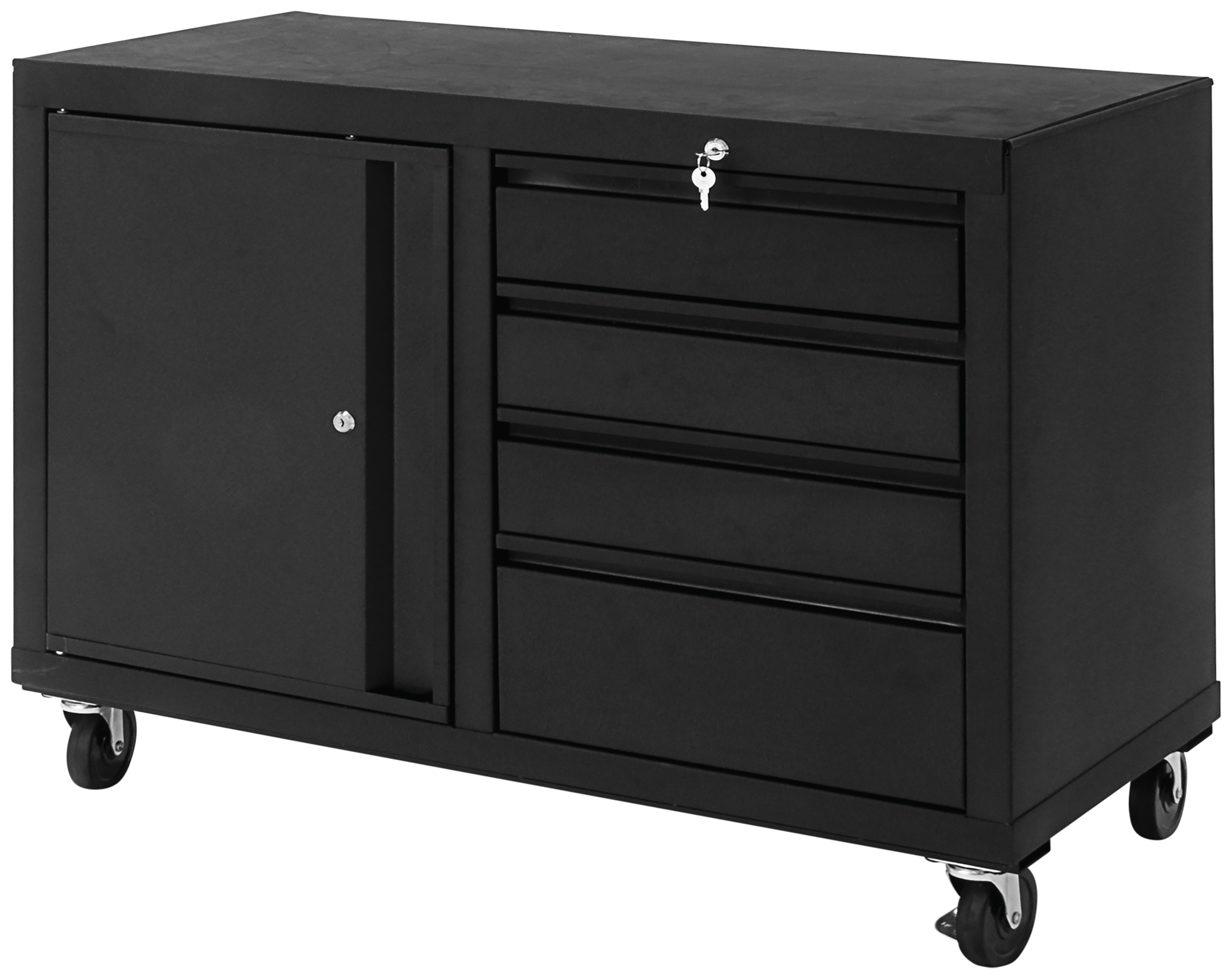 - Lockable cabinet and drawers