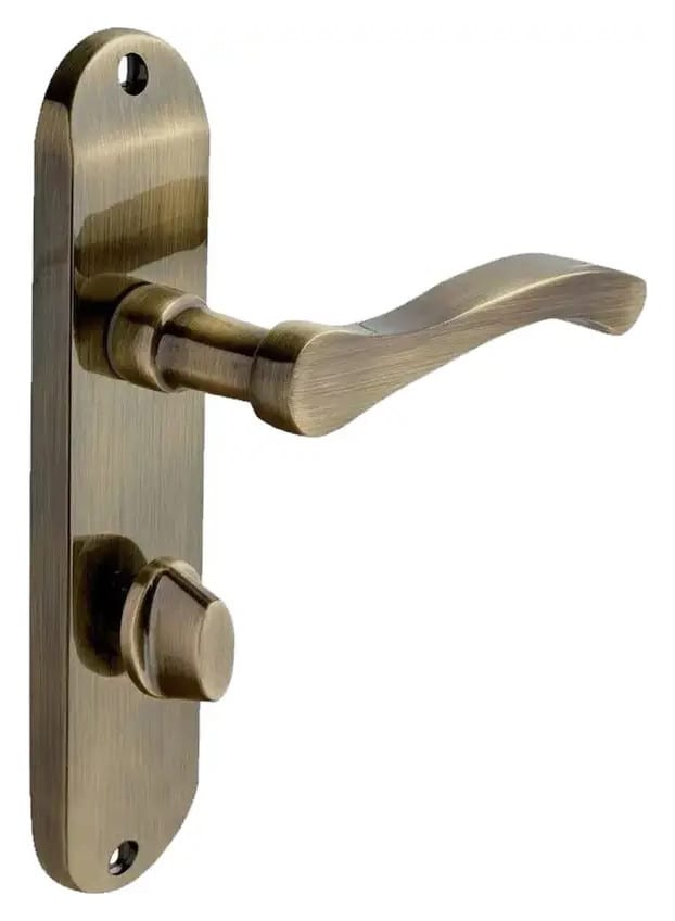High quality lever door handle in trendy antique brass finish ideal for interior bathroom door.