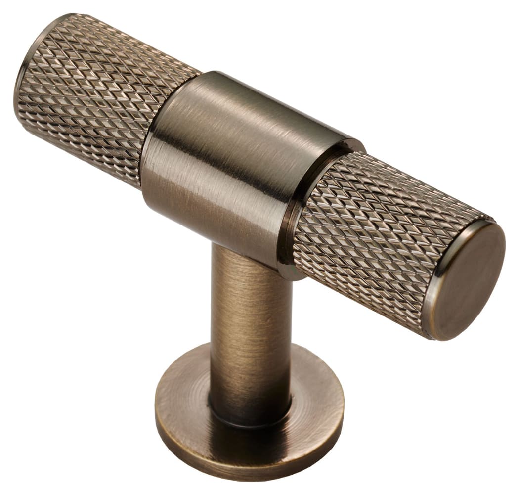 Part of our knurled cabinet collection, overall length of 50mm, 40mm projection and 18mm diameter, these knurled T Pull knobs are available in 5 big trend finishes, manufactured from solid brass, each piece is precision engineered to add texture to an iconic industrial design. Works perfectly with various interior design styles including industrial, modern, transitional, and contemporary. Matching cupboard pull handle and knob available.