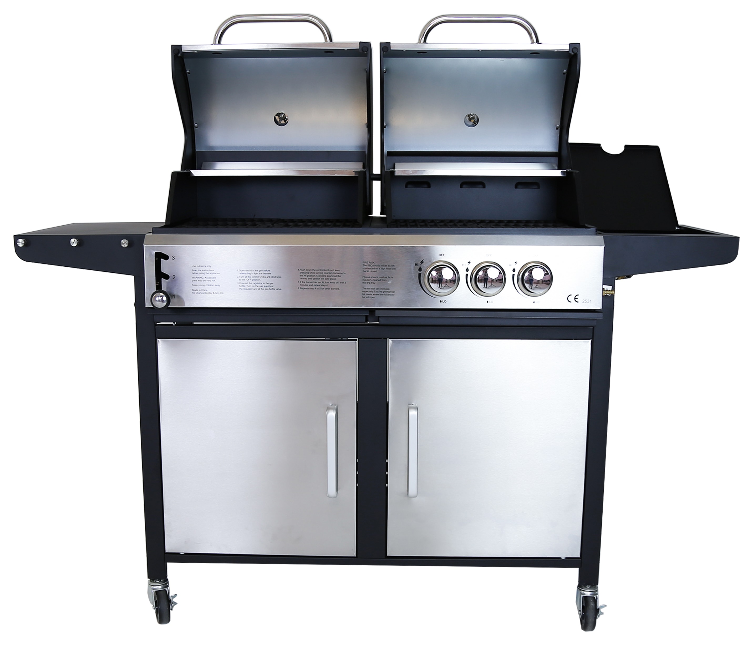 This dual fuel grill offers exceptional versatility by combining traditional charcoal cooking with modern gas technology. The device is engineered with two main gas burners and an additional side burner to support a diverse range of recipes. With a total power output of 8.3kw – 2.8kw per main burner and 2.7kw for the side burner – it delivers precise heat control ideal for achieving a perfect sear or slow roasting. Its robust construction, featuring trusted materials such as stainless steel and enamel, and dimensions of 147.5 x 52 x 110cm, provide both durability and ample cooking space. The integrated push and turn automatic ignition system ensures quick starts while dual thermometers enable accurate temperature monitoring. In addition, users benefit from thoughtful design elements, including a built-in warming rack and removable drip trays, making routine maintenance straightforward. Dual fuel cooking enables a range of heat zones that suit meat, seafood, and vegetables alike.