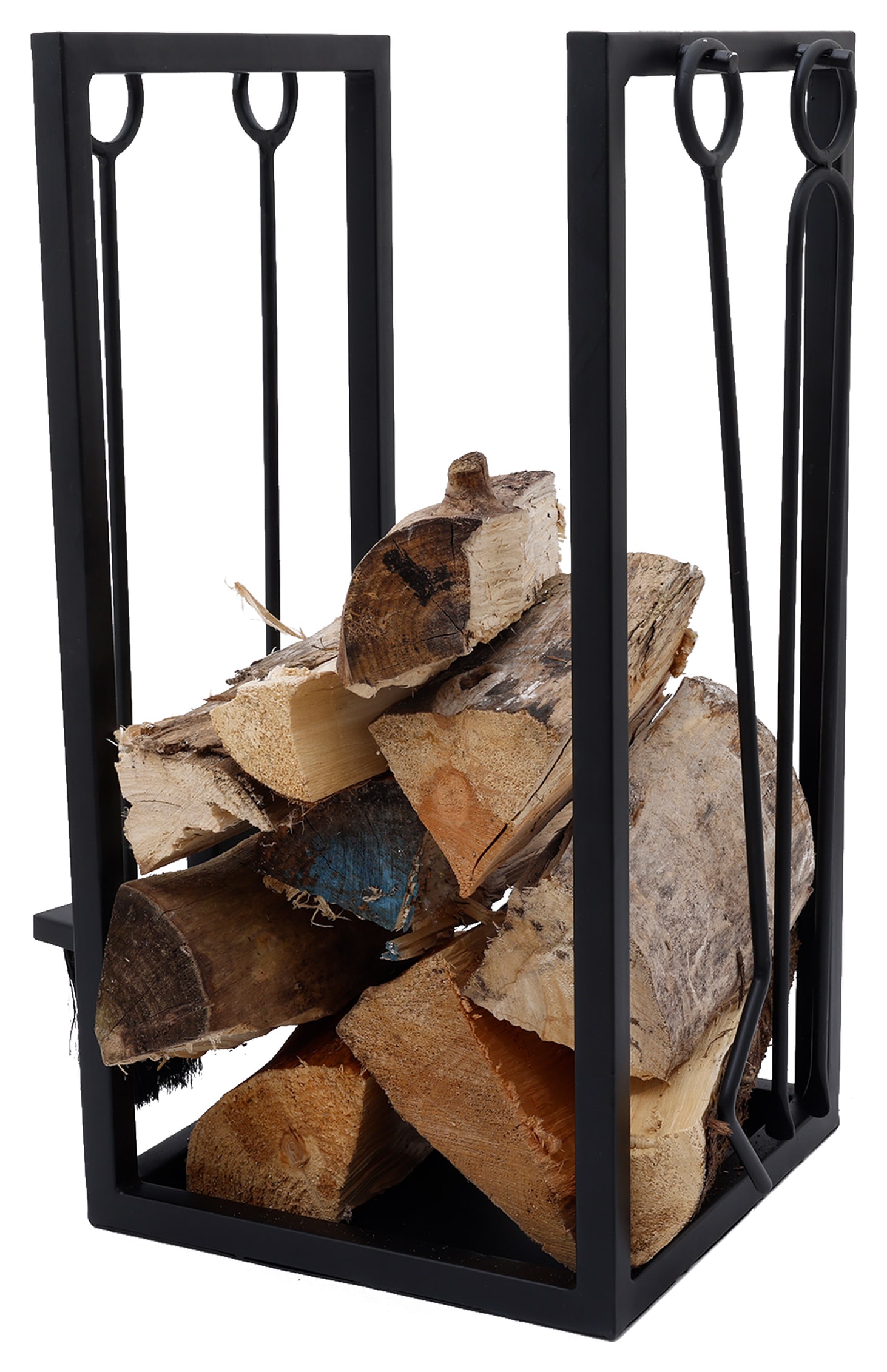 The Charles Bentley Hornbeam Log Holder Fireside provides everything you need for keeping your living room nice and toasty. With a pair of tongs, poker, coal shovel, the stand has 4 separate hanging hooks for each tool. With a solid sturdy base this log holder holds up to 10kg and makes a fitting accompaniment to any fireside.