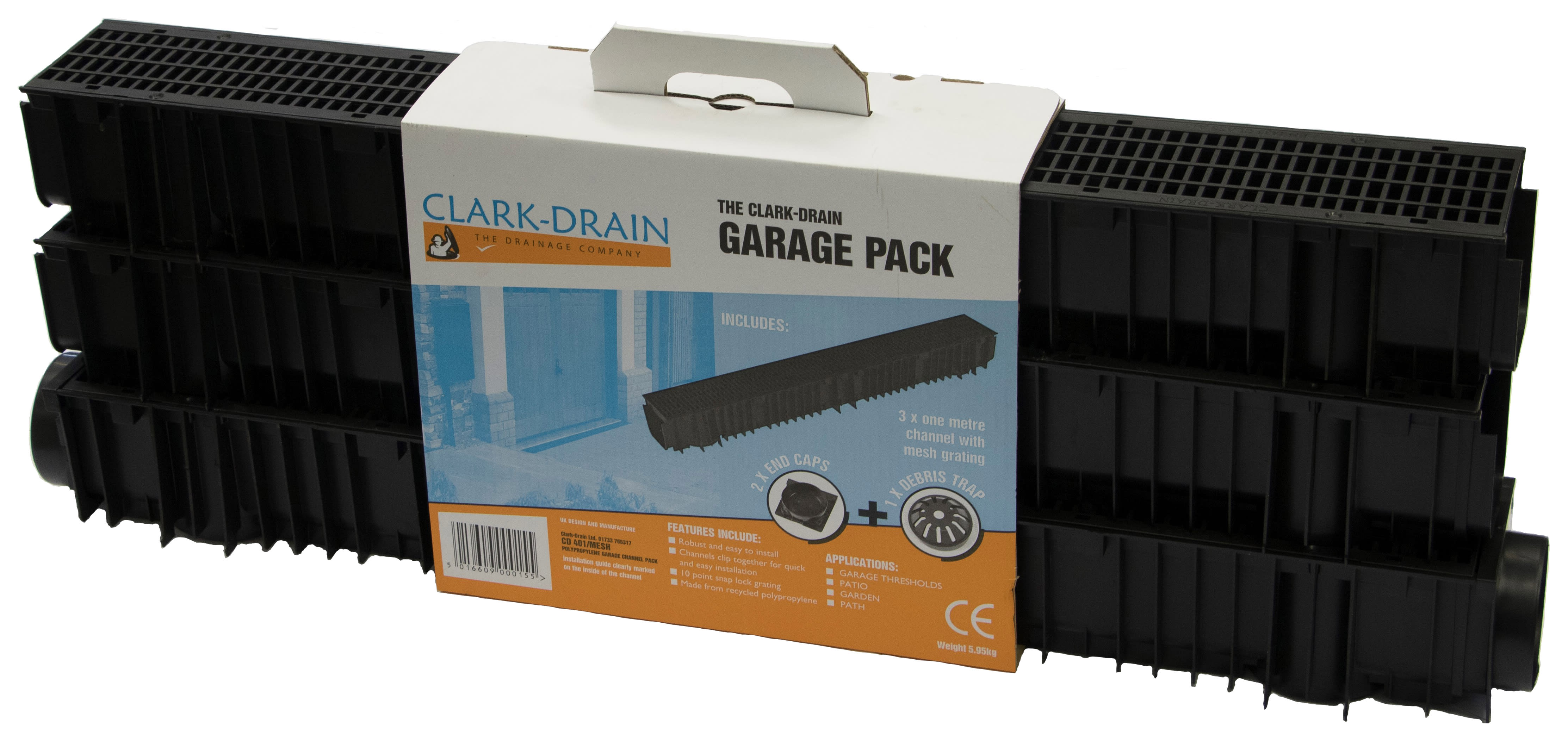 Clark-Drain Channel Drainage & Grating Garage Kit - Black