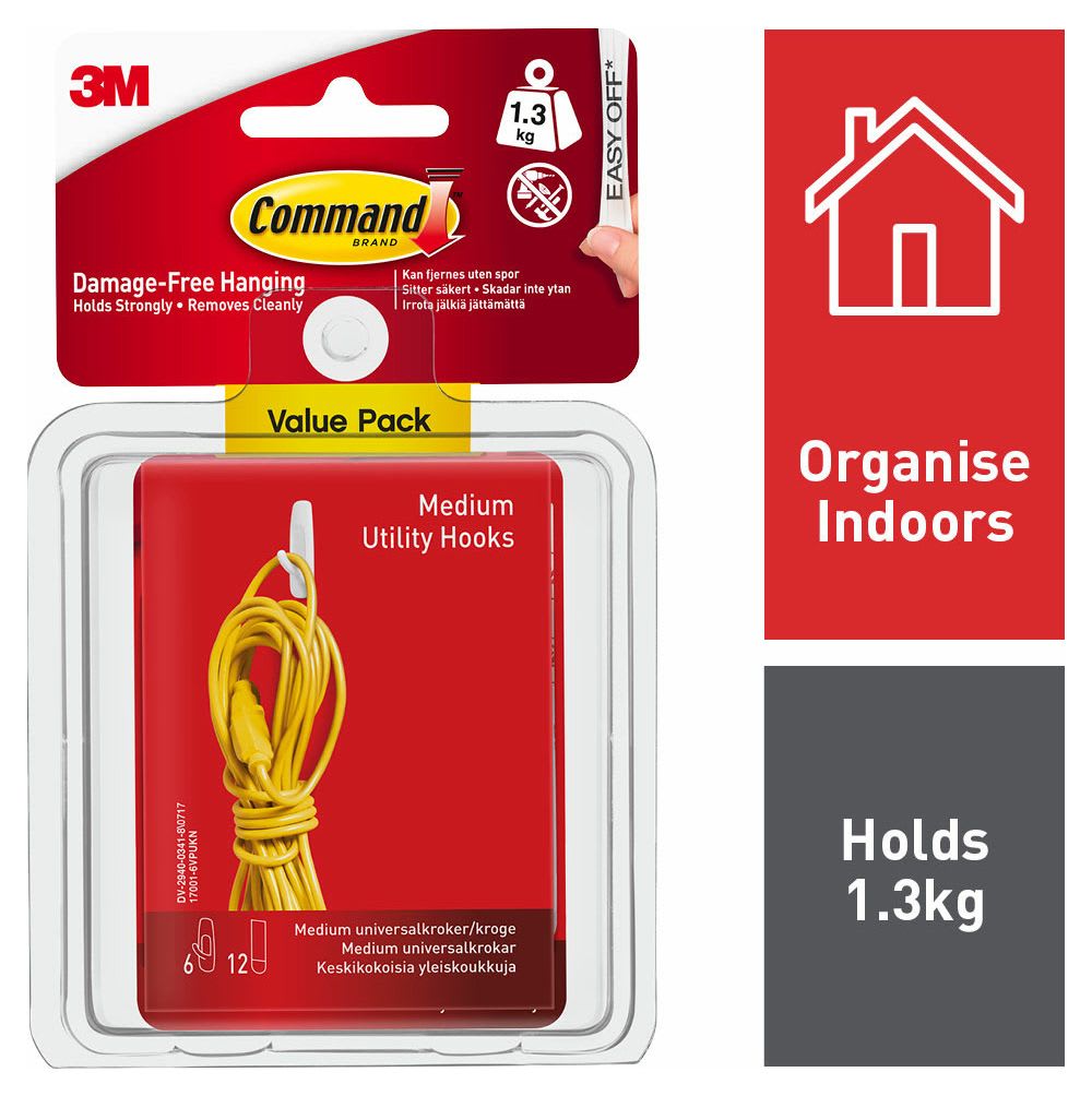 Our utility hooks hold strongly to a variety of surfaces including solid, hollow and painted walls. TheyÕre easily and cleanly removed Ð no cracks, holes, damaged plaster or sticky residue. Perfect for rented accommodation where you may be worried about harming surfaces. Reusing the hook is as easy as attaching a new Command Strip; each pack contains a spare and refill packs are available.