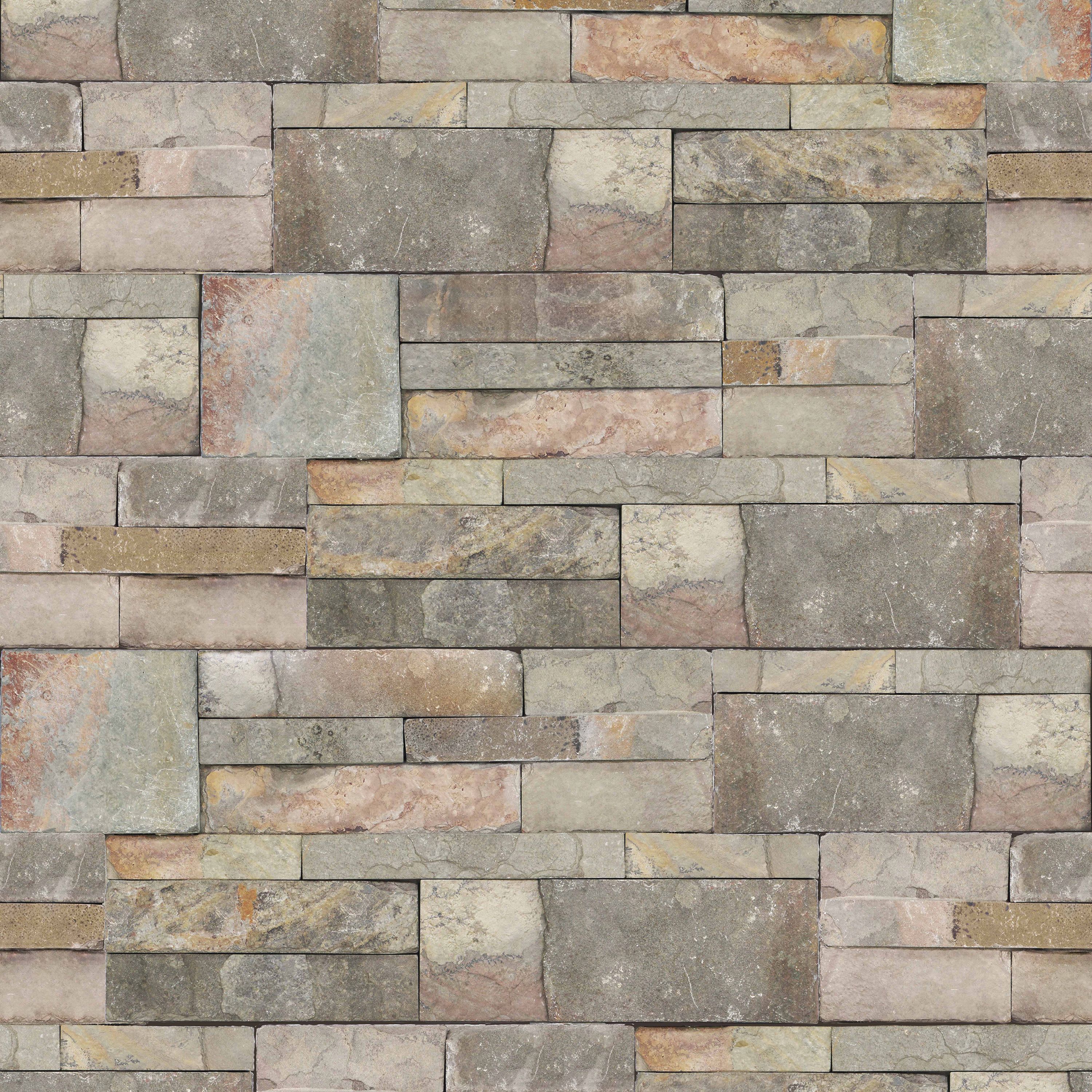 Perfect for any kitchen or bathroom, this brick design brings the outdoors in with this natural sandstone wallpaper.