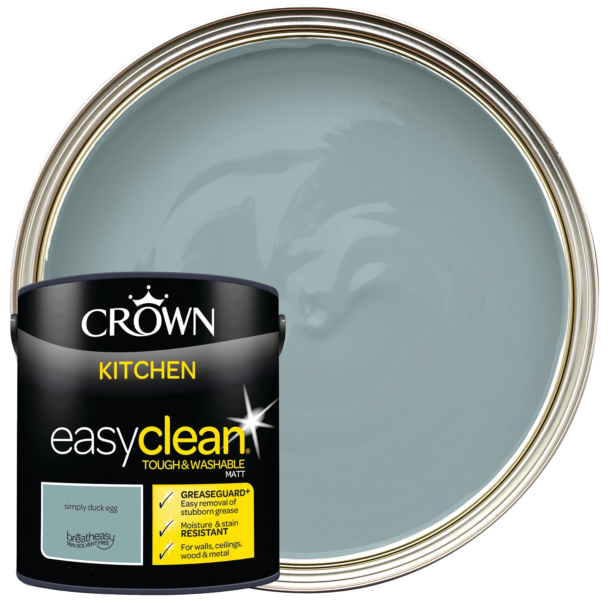 Crown Easyclean Matt Emulsion Kitchen Paint - Simply Duck Egg - 2.5L