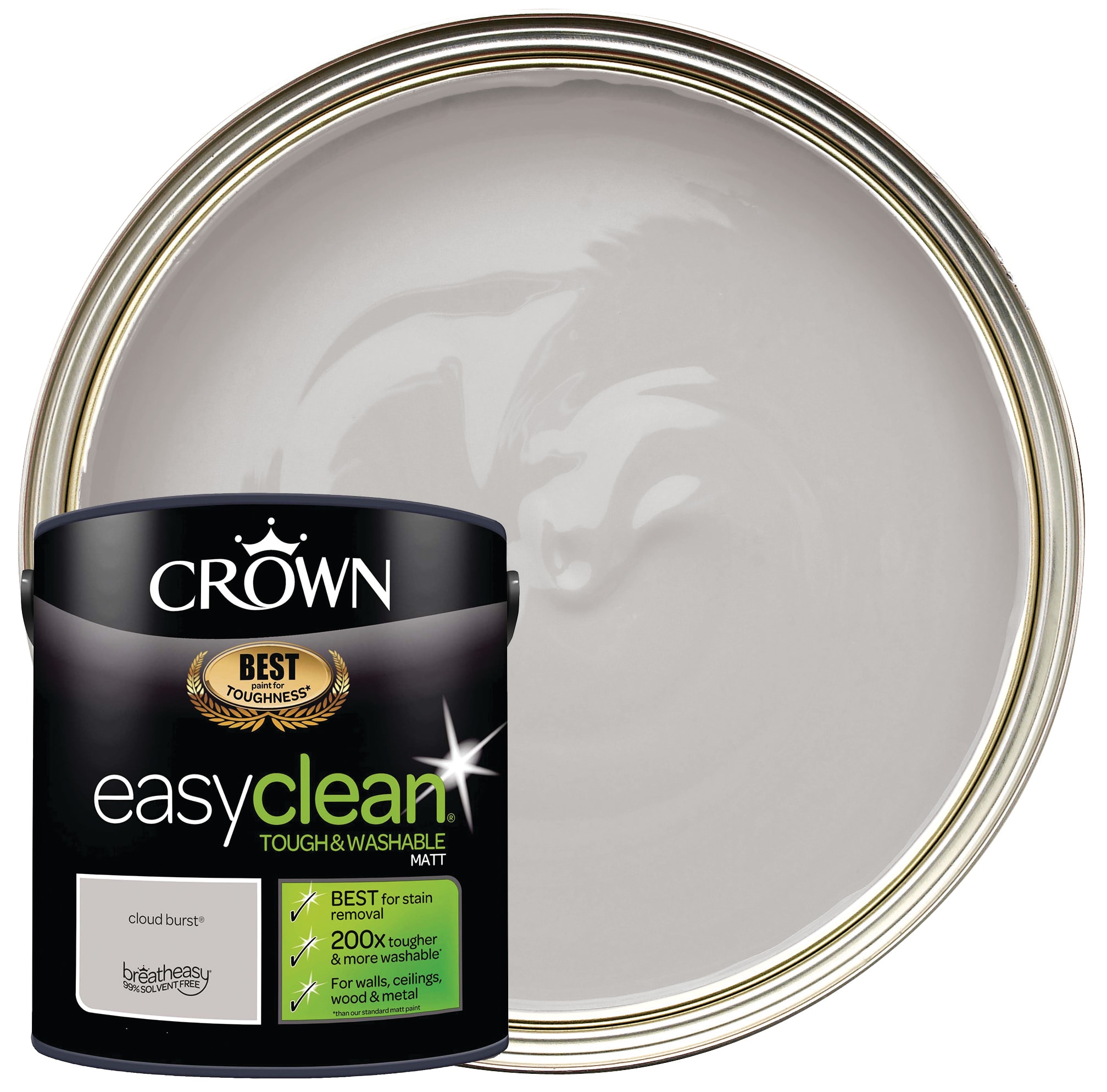 The Crown Easyclean® Matt Emulsion is specially formulated to allow for repetitive cleaning and is 200 times tougher and more washable than our standard matt paint. Easyclean® has been independently tested* against our main competitor products and is shown to be the best for stain and scrub resistance, toughness and washability. Easyclean® keeps walls, ceilings, wood and metal looking cleaner for longer, making it perfect for busy family homes.