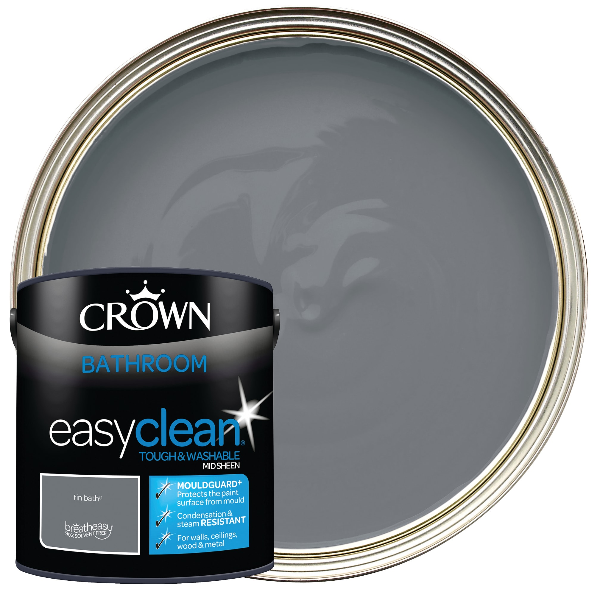 Crown Easyclean Mid Sheen Emulsion Bathroom Paint - Tin Bath - 2.5L