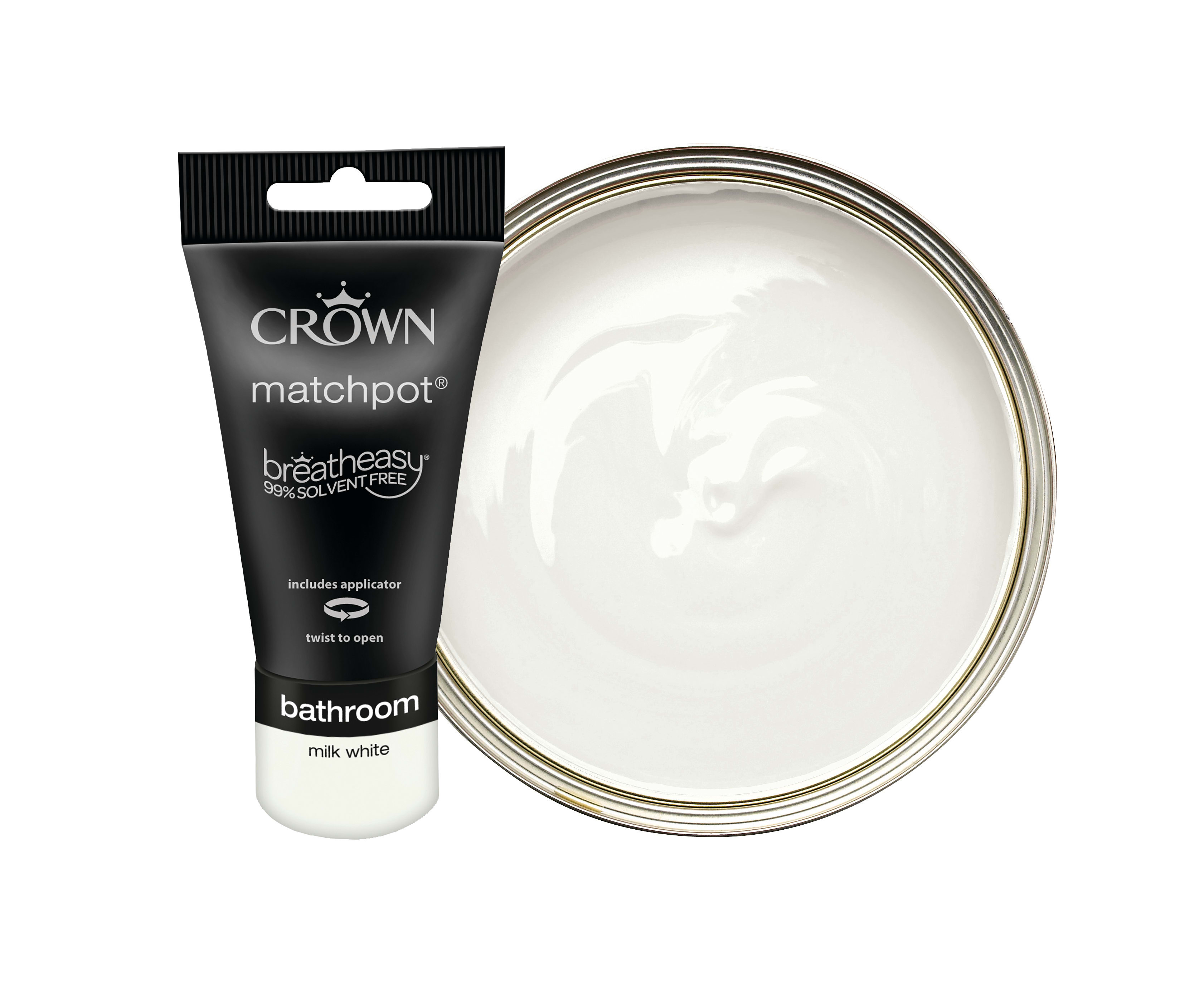 Crown Easyclean Mid Sheen Emulsion Bathroom Paint Tester Pot - Milk White - 40ml