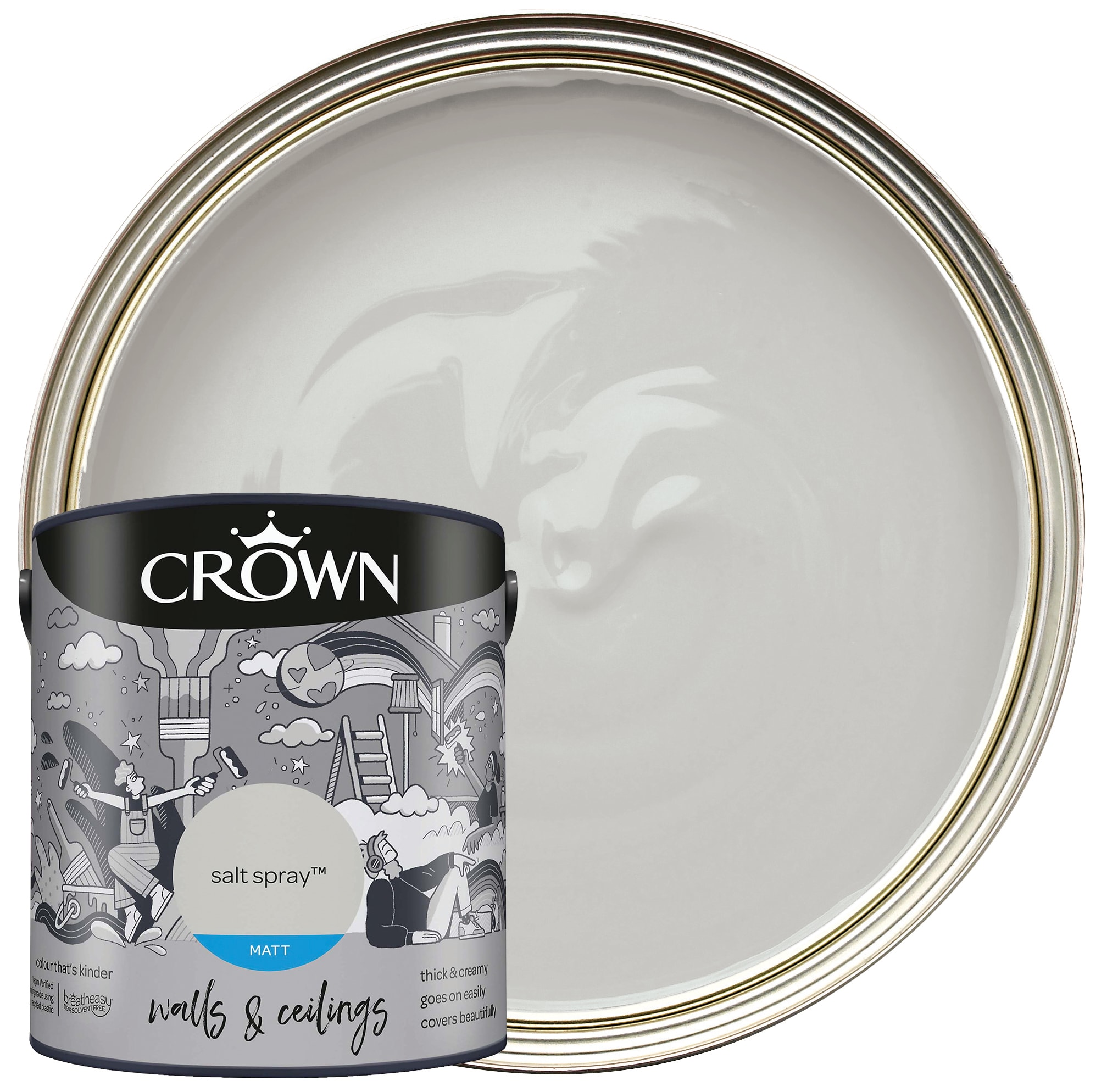 The Crown Matt Emulsion Paint gives your internal walls and ceilings a modern look with no surface shine. This rich and creamy formulation glides on effortlessly for a soft flawless finish. Breatheasy® formulation is 99% solvent free and reduces allergens. This excellent and full coverage paint will look perfect in any room within your home.