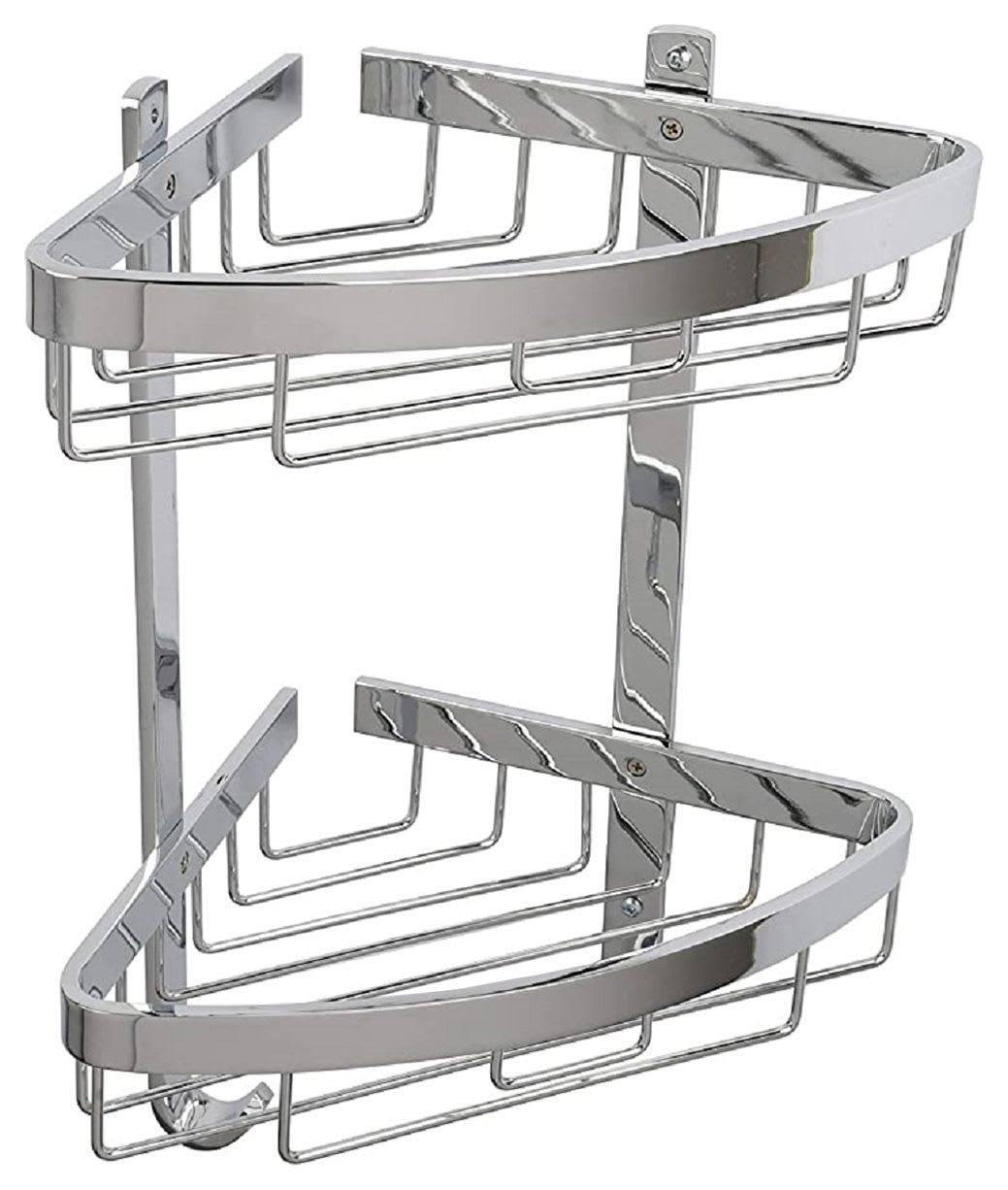 Croydex Large 2 Tier Corner Bathroom Storage Basket - Chrome