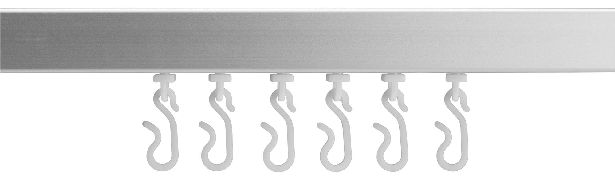 - Satin anodised aluminium rail with grey plastic wall brackets