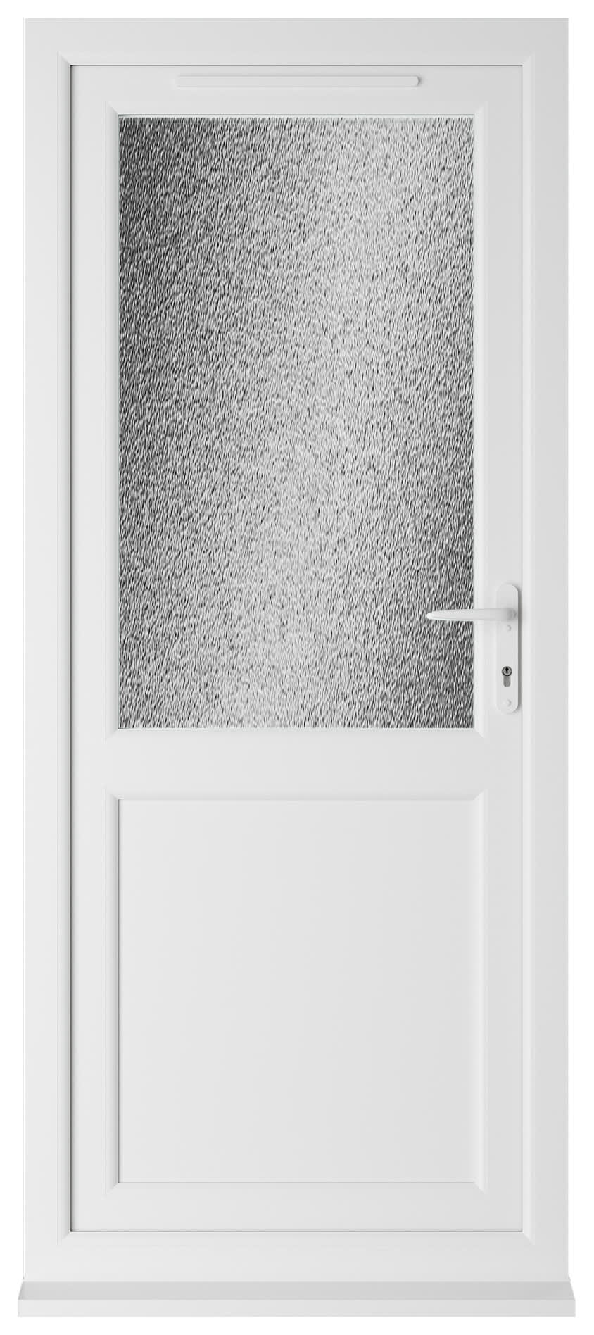 Crystal uPVC White Left Hand Inwards Obscure Triple Glazed Half Glass Half Panel Single Door - 2090mm