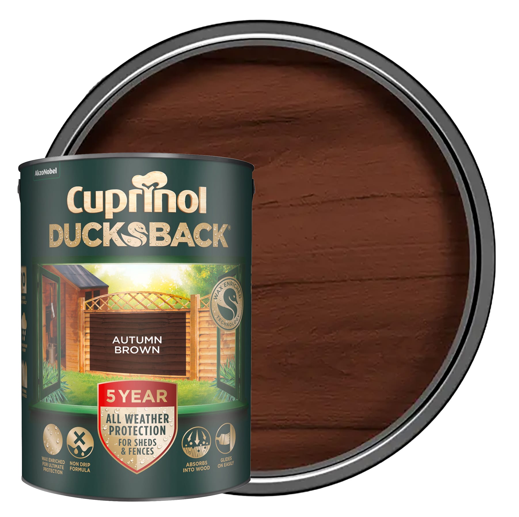 Cuprinol 5 Year Ducksback Matt Shed & Fence Treatment - Autumn Brown - 5L