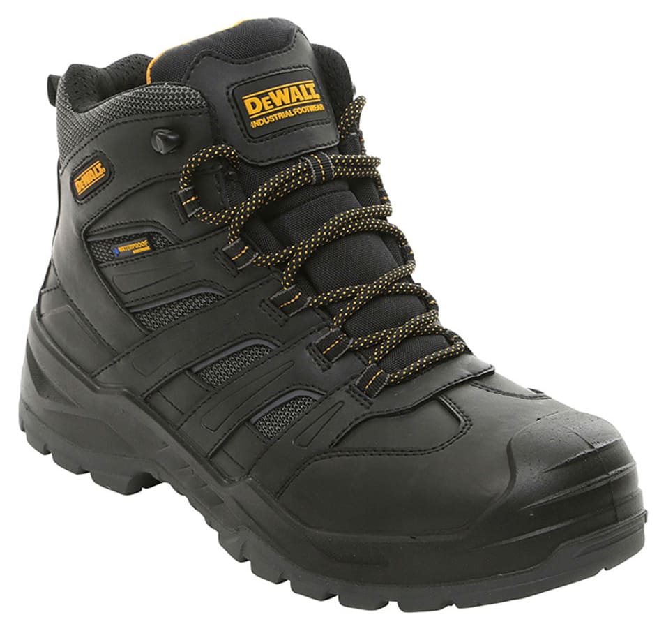 DEWALT Murray Safety Boots have a leather and mesh upper making them waterproof and breathable. Manufactured with a steel toe cap and steel midsole protection, this boot has been made wider than standard boots to give a generous fitting. A PU comfort insole, padded tongue and collar provide added comfort. The PU/rubber outsole is certified to the best slip rating, as well as achieveing resistance to fuel and oil, and the ladder grip status which is driven from the firefighters certification. A PU toe guard gives added protection to the toe area. EN Test CE EN ISO 20345 2022. Safety Rating: S7 SR SC FO HRO LG. Slip Rating: SR.
