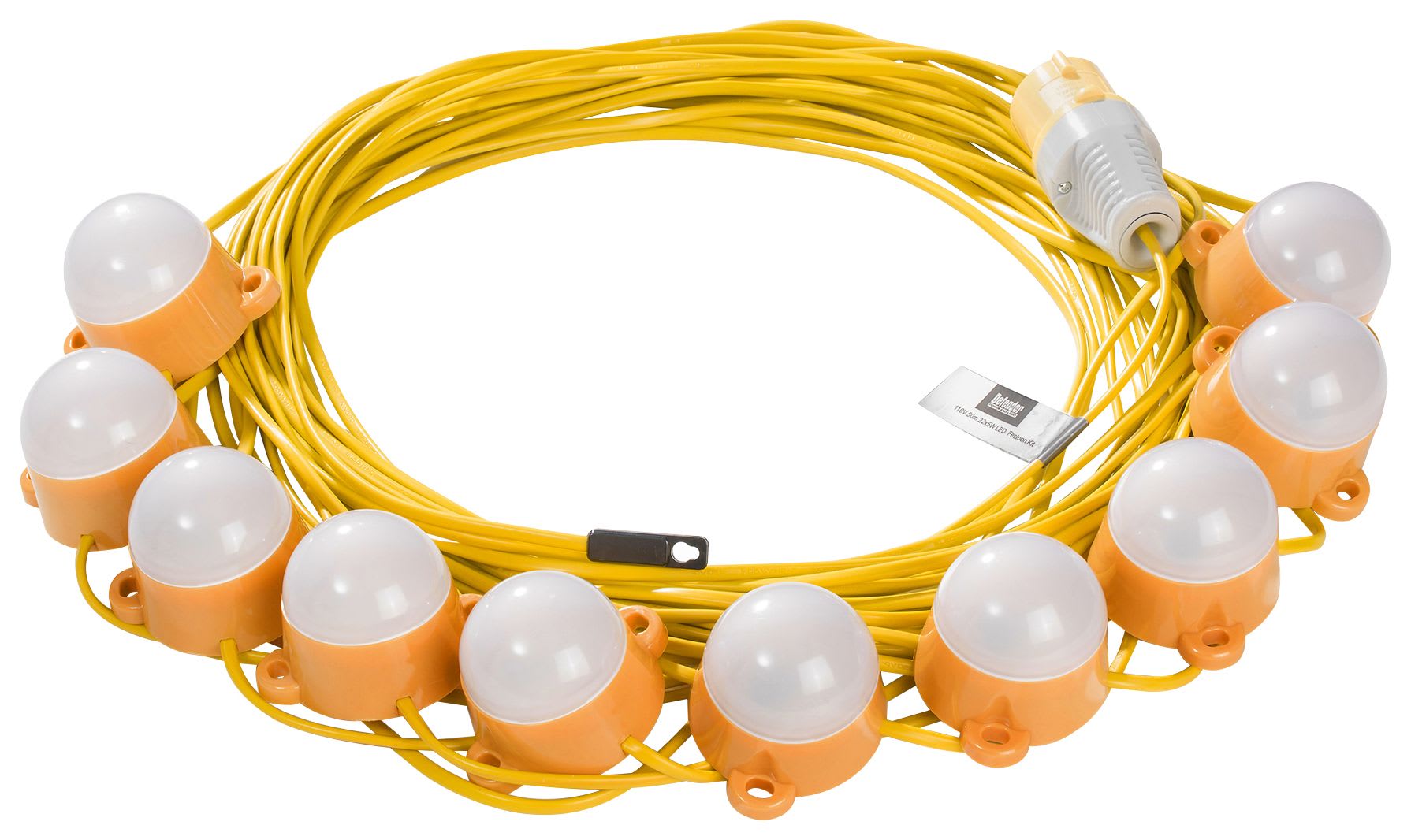 The Defender 240V 22m Encap LED Festoon Light is designed to give a unique combination of great light output, low running costs, and robust construction. Ultrasonically sealed modules eliminate the unscrewing of the lens which sets this product apart from the more traditional festoons, whilst built-in mounting points remove the need for ceiling hooks or poles.