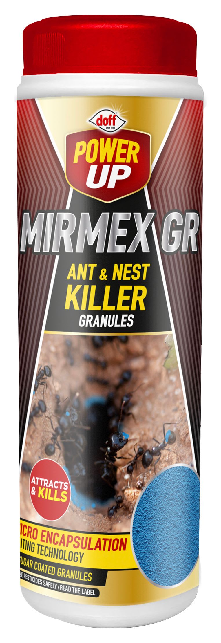 The Doff Power Up 2-in-1 Ant and Nest Killer Granules is a sugar coated insecticide bait designed specifically to control ants. After having ingested the bait, the ant does not die immediately and has time to return to the colony. The sharing of the bait amongst members of the colony helps disseminate the insecticide, giving rise to a chain effect that will destroy the nest entirely.