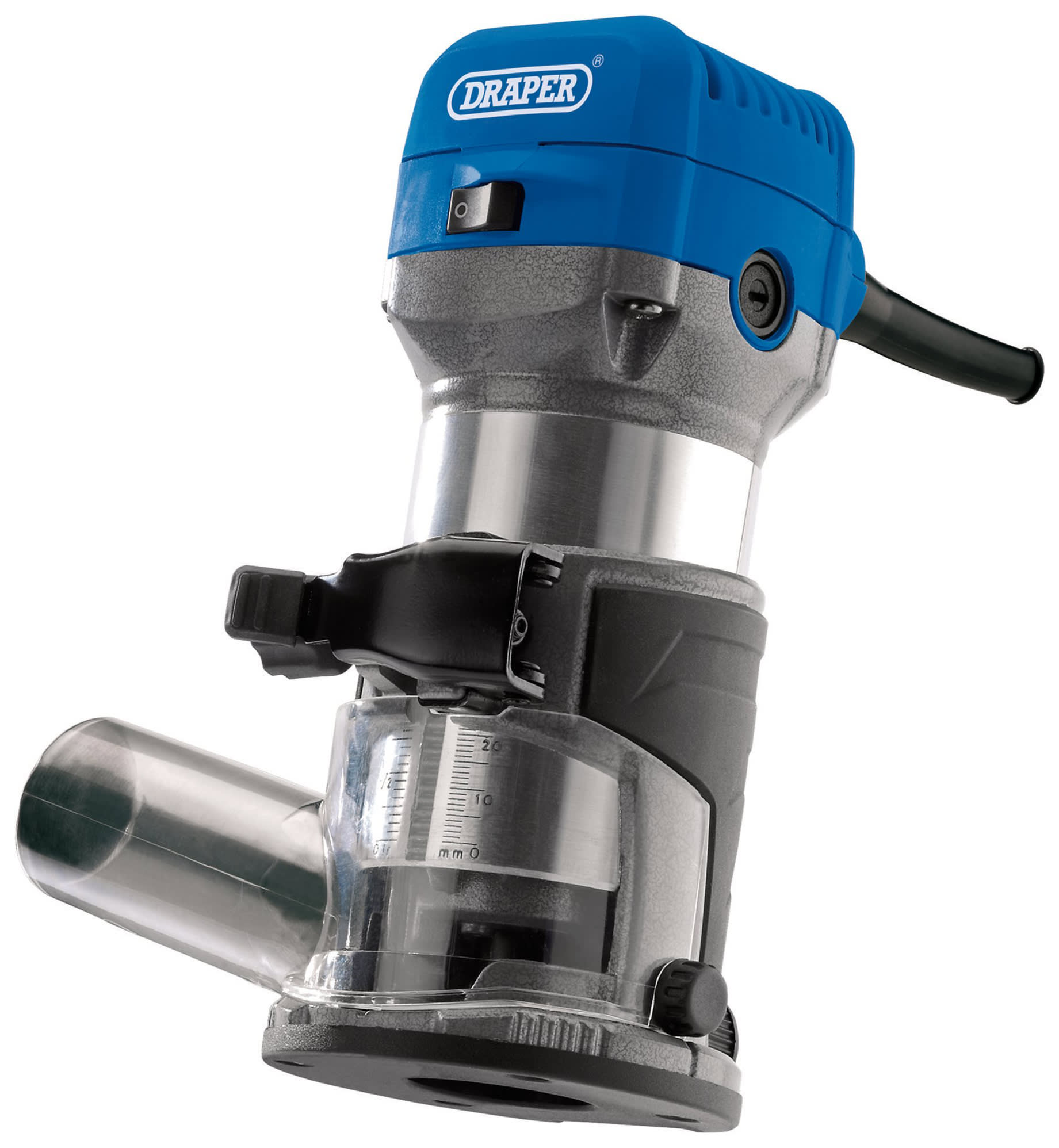 The Draper PR710D Trimming Router is a compact, powerful router trimmer with high quality, solid aluminium body. A lightweight tool, ideal for trimming, edge forming, slot cutting and decorative work. Fitted with a variable speed motor, an adjustable parallel fence, an adjustable depth guide and a spindle lock. Supplied with parallel fence guide, trimming guide, spanner and 6mm, 1/4", 8mm collets. Plunge base is available separately.