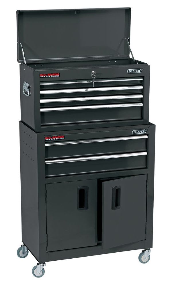 This Draper 24" Combined Roller Cabinet And Tool Chest has 6 spacious draws and is ideal for any workshop. Fitted with ball bearing runners in the drawers and swivelling casters for smoother operation and makes it mobile within your workshop or garage.