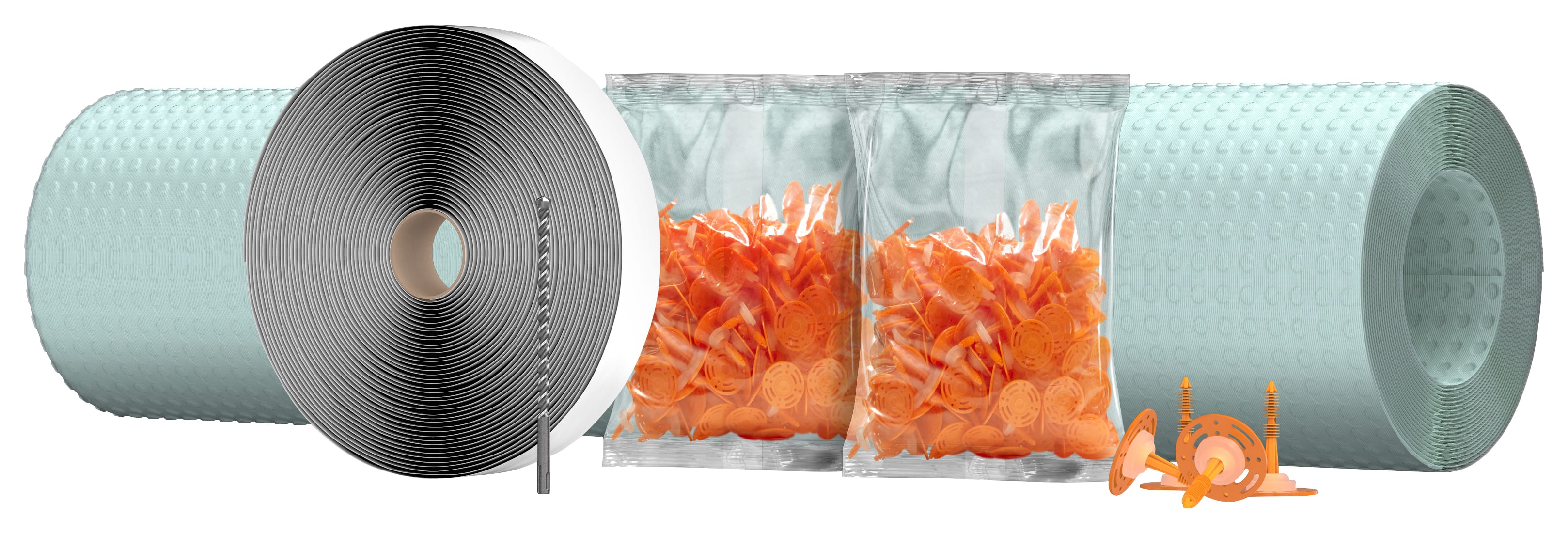 - Kit includes: 1 x 2mm plaster membrane 1 x 20m, 2 x Drybase plaster plugs (bag of 150), 2 x Drybase plaster plug seals (bag of 150), 1 x CDM double sided tape 30mm x 2mm x 20m, 1 x 8mm x 160mm SDS drill bit