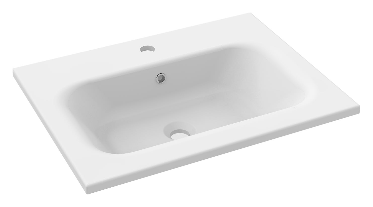A contemporary and clean lined cast marble vanity top designed to fit the deeper Duarti 600mm vanity units.