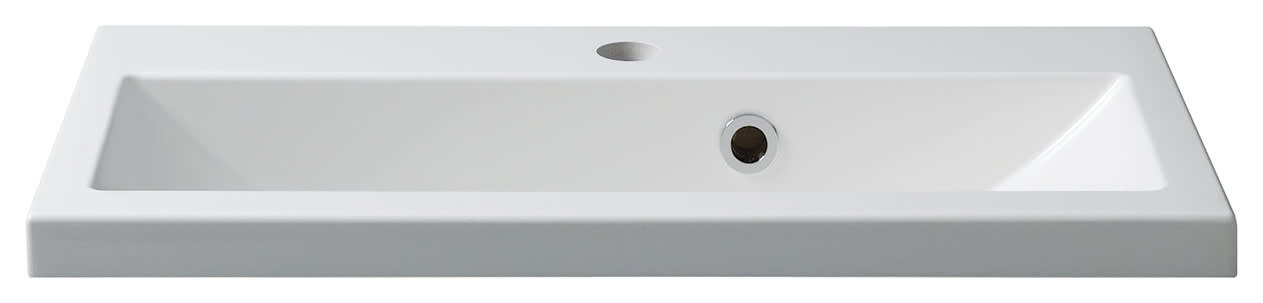 A compact in-line basin designed to sit directly on to a 600mm Duarti standard basin unit with worktop abutting either side, making a very quick & easy installation.