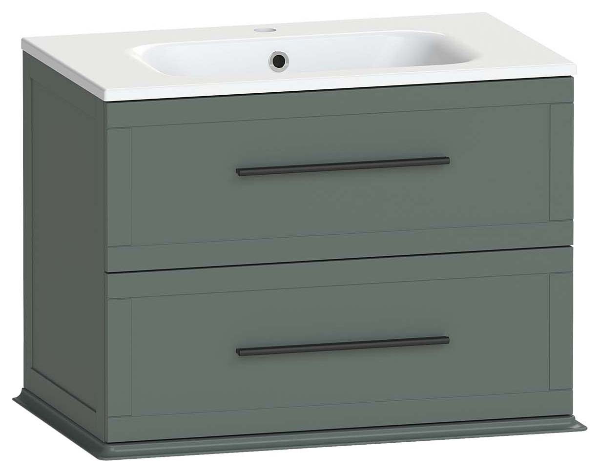 Duarti by Calypso Kentchurch Juniper Green Wall Hung Vanity with Farley Recessed Basin & Black Handles - 750mm
