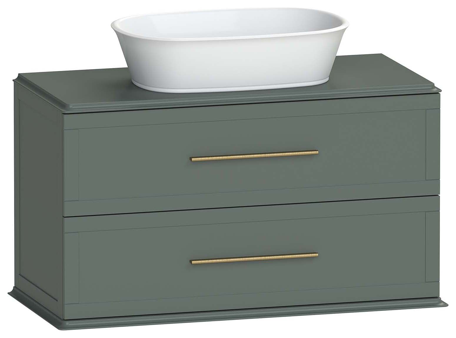 Duarti by Calypso Kentchurch Juniper Green Wall Hung Vanity with Hanbury Countertop Basin, Worktop & Brass Handles - 1000mm