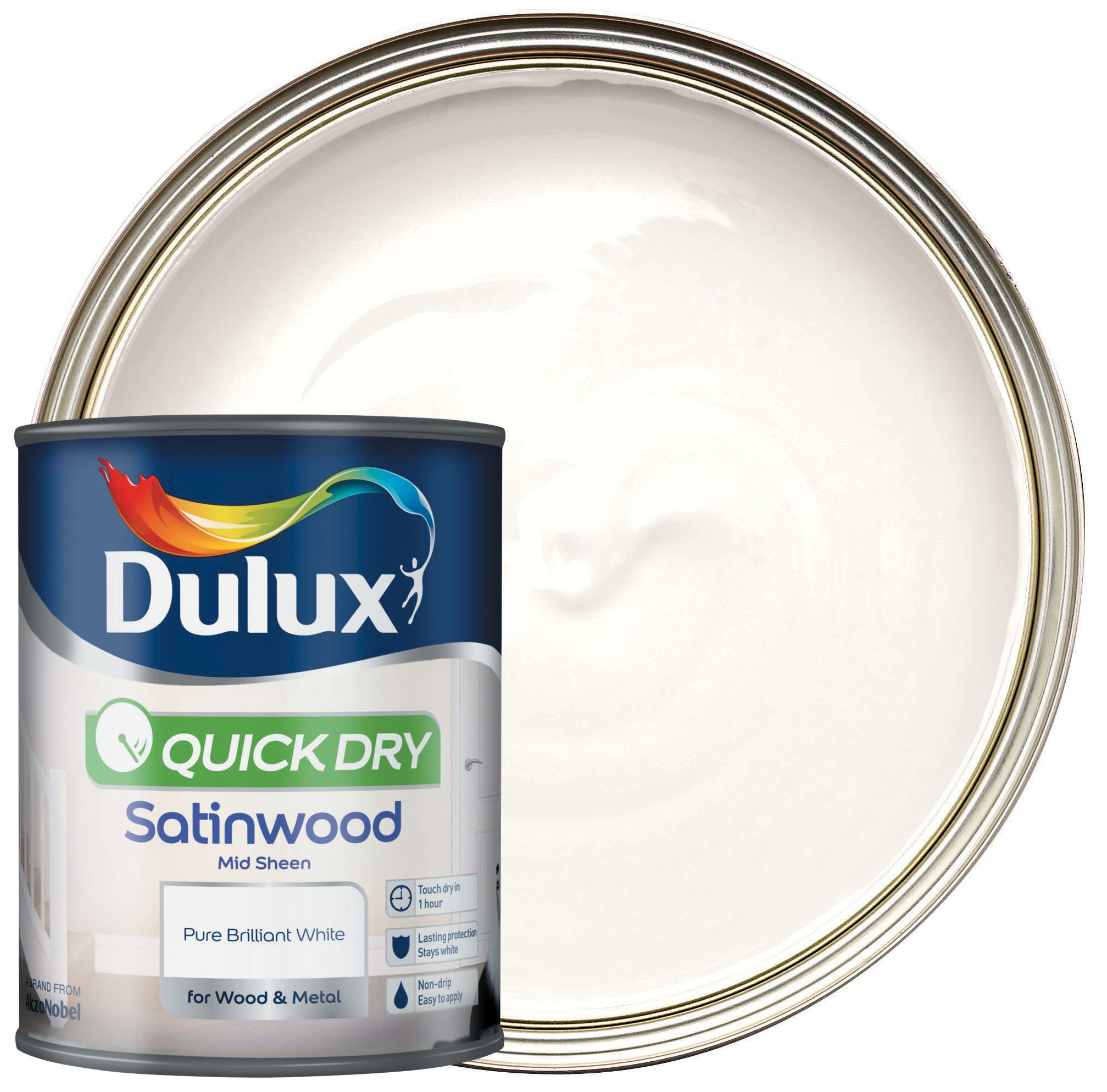 Dulux Quick Dry Satinwood Paint - Pure Brilliant White - 750ml
