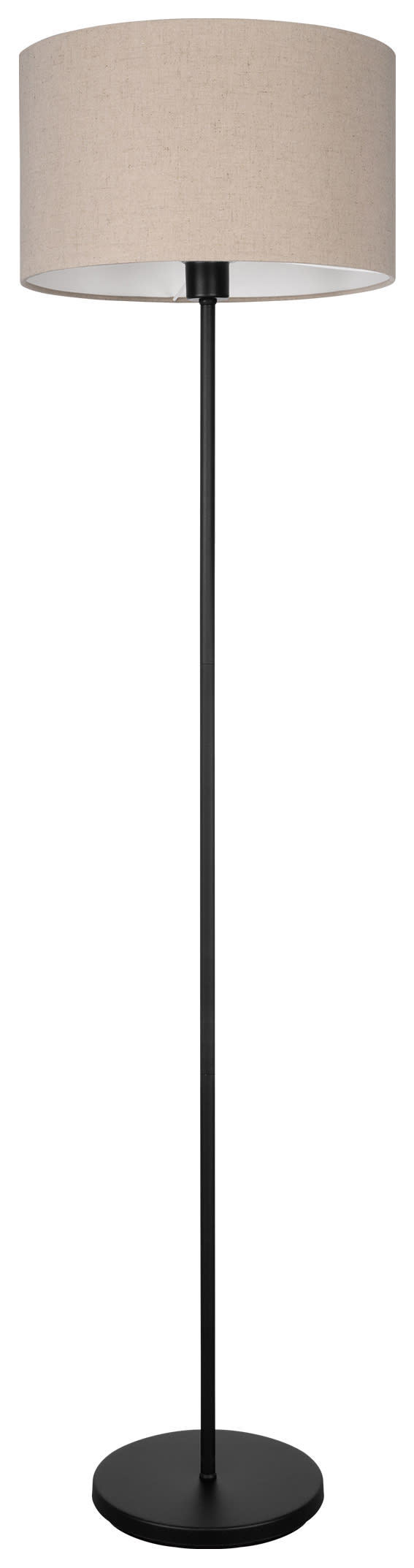 The Feniglia floor light embodies the essence of minimalistic elegance with its black metal base and round lampshade in a natural-coloured linen finish. With a natural design, the floor lamp fits seamlessly into any interior style and complements existing decor. With form and function in mind, the product can easily turn on or off via an included in-line foot switch. Its soft and warm glow provides cosy lighting, making it a perfect addition to various living spaces, whether in the bedroom, living room, or hallway. The product has an E27 lamp holder and requires an E27 lightbulb, which is not included.