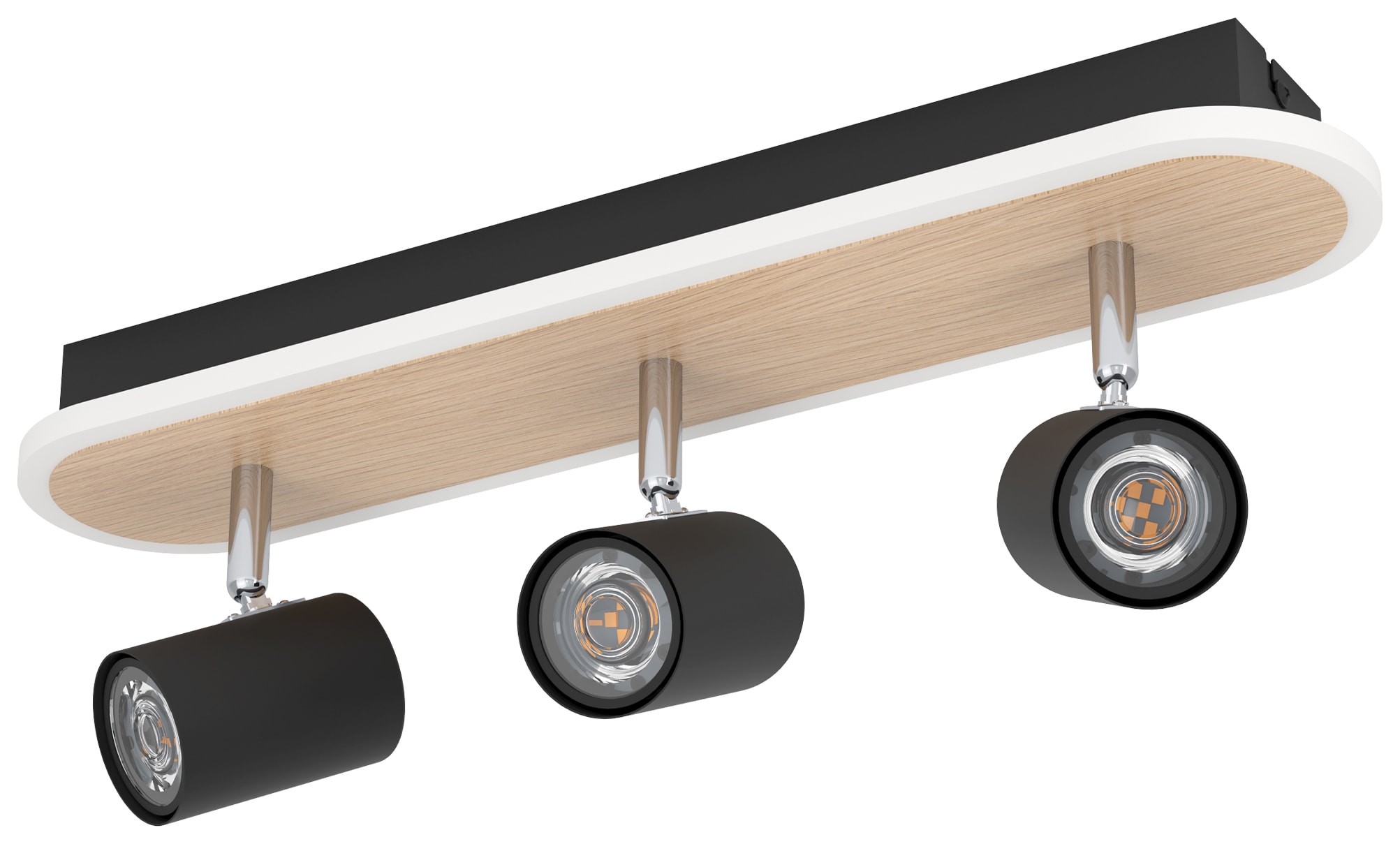 Eglo Rimbocchi 3 Light Natural Wood & Steel Modern Spotlight