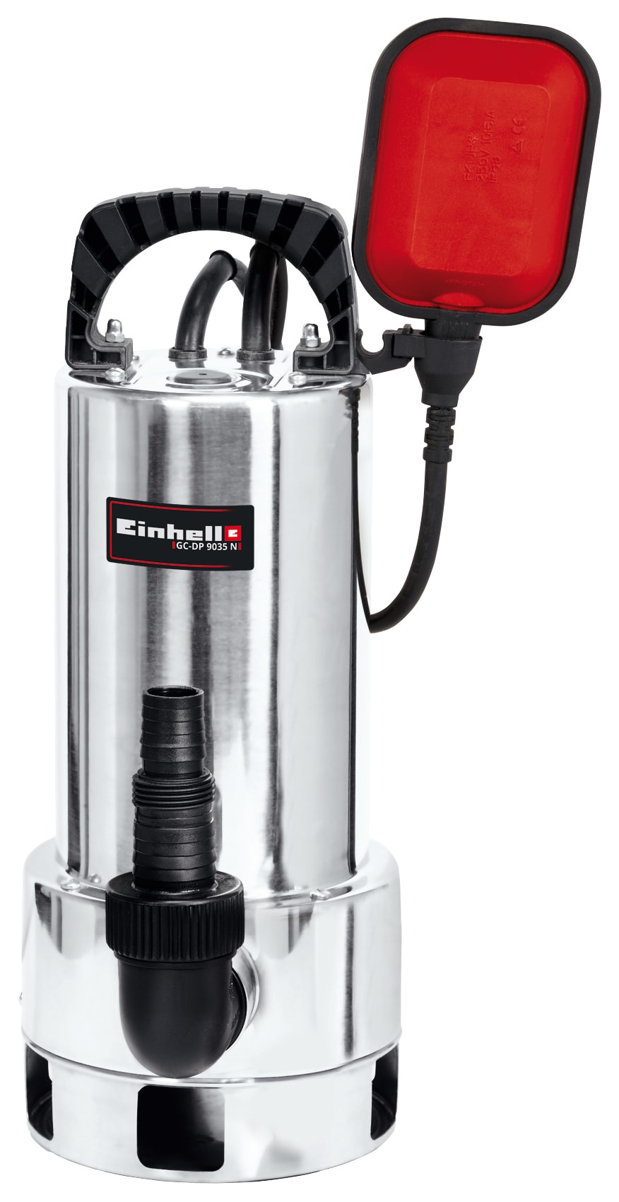 The Einhell GC-DP 9035 N Dirty Water Pump is a robust and powerful device for pumping away dirty water from ponds, building pits and flooded basements. With a rating of 900W, this powerful pump achieves a delivery rate of up to 18,000L of dirty water per hour. The pump housing is made of high quality stainless steel and the high-grade mechanical seal protects the powerful motor and largely eliminates the need for maintenance. A variable float switch lets you choose between continuous operation and a pre-selected on and off switching level. Comes with a universal connection and a 90° bracket. In addition to this, it has a carry-handle for user-friendly transportation.