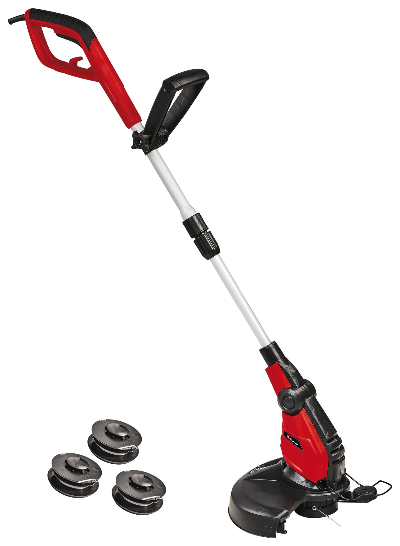 The Einhell GC-ET 4530 Corded Electric Grass Trimmer is a practical and very powerful tool which helps you produce an immaculate garden through effortless trimming in hard-to-reach areas of the garden. This tool is very versatile thanks to its motor head which can be rotated through 180° and tilted to four different positions for user-friendly cutting along vertical surfaces. User-friendly two-hand operation and exact adjustment to users of all sizes are possible with the infinitely adjustable alu telescopic long handle with adjustable additional handle, thus enabling tireless operation. The housing and additional handle are made of high-grade, impact-resistant plastic. Complete with 3 thread spools in the set.