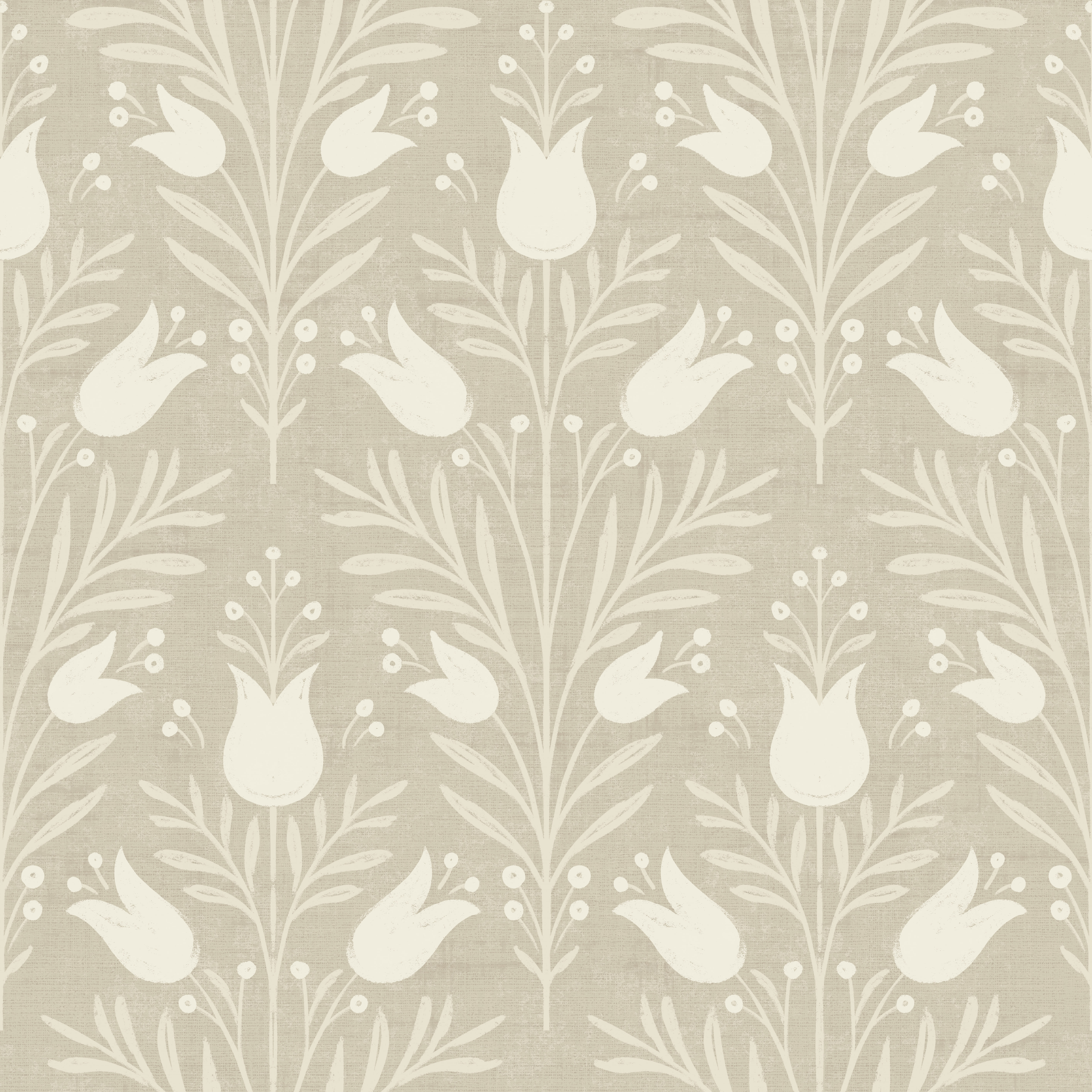 Invite warmth and character into your living space with the timeless appeal of this heritage inspired Tulip motif design. Influenced by the rich legacy of the arts and crafts movement, this wallpaper features a sense of timeless elegance and will add charm to any room. The textured finish adds a sense of warmth to the handcrafted design and the taupe colourway creates a tranquil feel. Whether you envision a cosy reading nook or a grand formal dining room, this Heritage Tulip design provides the perfect backdrop.