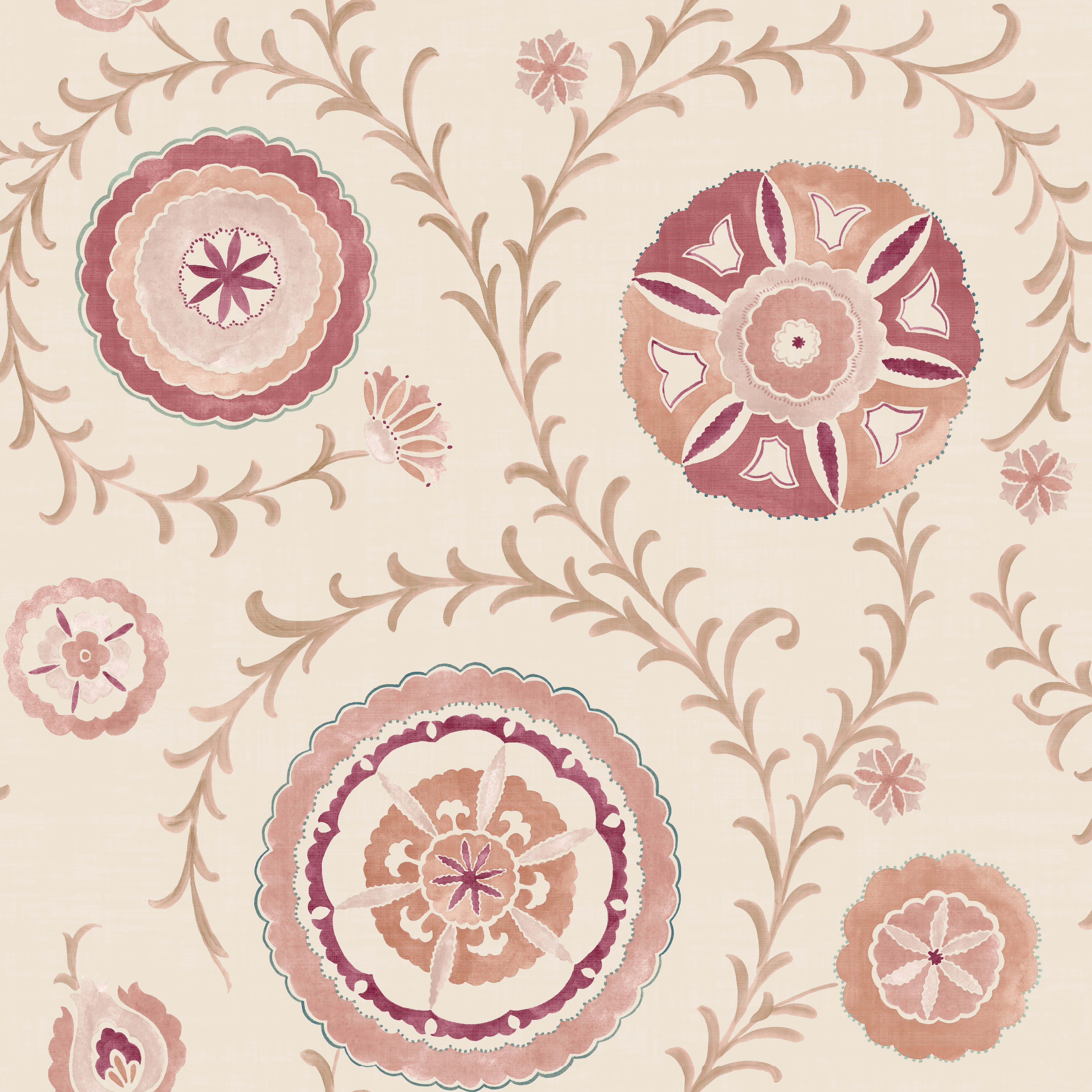 Embark on a journey across the continents with this mesmerising wallpaper. The beautiful hand-painted Moroccan swirls dance across the design, punctuated by exquisite Persian floral medallions, each a testament to nomadic artistry. The warm spice colours, subtle texture and fluid lines will add warmth and tranquillity to any space. A harmonious blend of North African, Mediterranean, and Persian styles this stunning wallpaper invites a cultural richness to your walls.