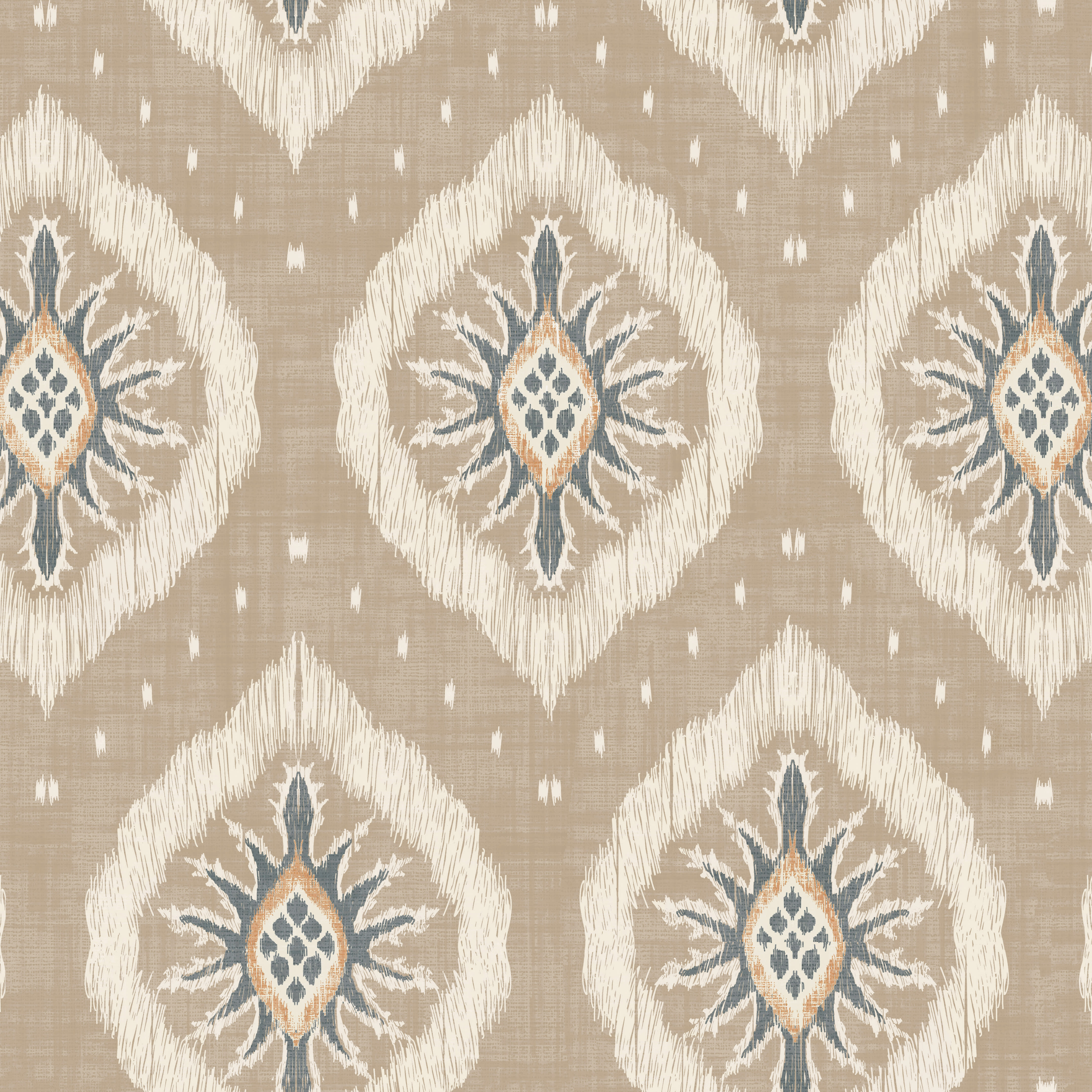 Immerse yourself in the beautiful world of the Silk Road with this striking interpretation of a traditional Uzbekistan Ikat design. With its diamond inspired motifs and textured ikat threads, this wallpaper will certainly add character to any interior. Inspired by traditional resist dying techniques of rich historical textiles, tradition truly meets elegance in this design. A symphony of warming neutrals, with a hint of greyed off blue, this colourway is sure to create a calm haven within your home.