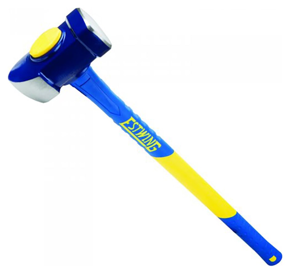 The Estwing EDSH-1036F 10lb Demolition hammer is perfect for heavy duty and industrial construction projects. This hammer features a 10lb forged chrome steel head with striking ends hardened to 50-55 HRC to withstand years of repeated impacts without deforming. The hammer head is specially forged into a unique shape with a wedged demolition face to maximize destructive force and a wide flat face for improved strike accuracy. This head is mounted to a 36" long, fibreglass handle which is double injected for increased strength and durability. A textured rubber overlay on the handle provides a comfortable, ergonomic, and secure grip in both grip positions while also helping to dampen vibrations. Below the striking head, the handle and rubber overlay are thicker to provide increased overstrike protection to prevent damage from missed hits.