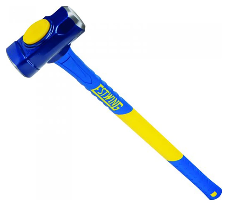 The Estwing EDSH-836F 8lb Demolition hammer is perfect for heavy duty and industrial construction projects. This hammer features a 8lb forged chrome steel head with striking ends hardened to 50-55 HRC to withstand years of repeated impacts without deforming. This head is mounted to a 36" long, fibreglass handle which is double injected for increased strength and durability. A textured rubber overlay on the handle provides a comfortable, ergonomic, and secure grip in both grip positions while also helping to dampen vibrations. Below the striking head, the handle and rubber overlay are thicker to provide increased overstrike protection to prevent damage from missed hits.