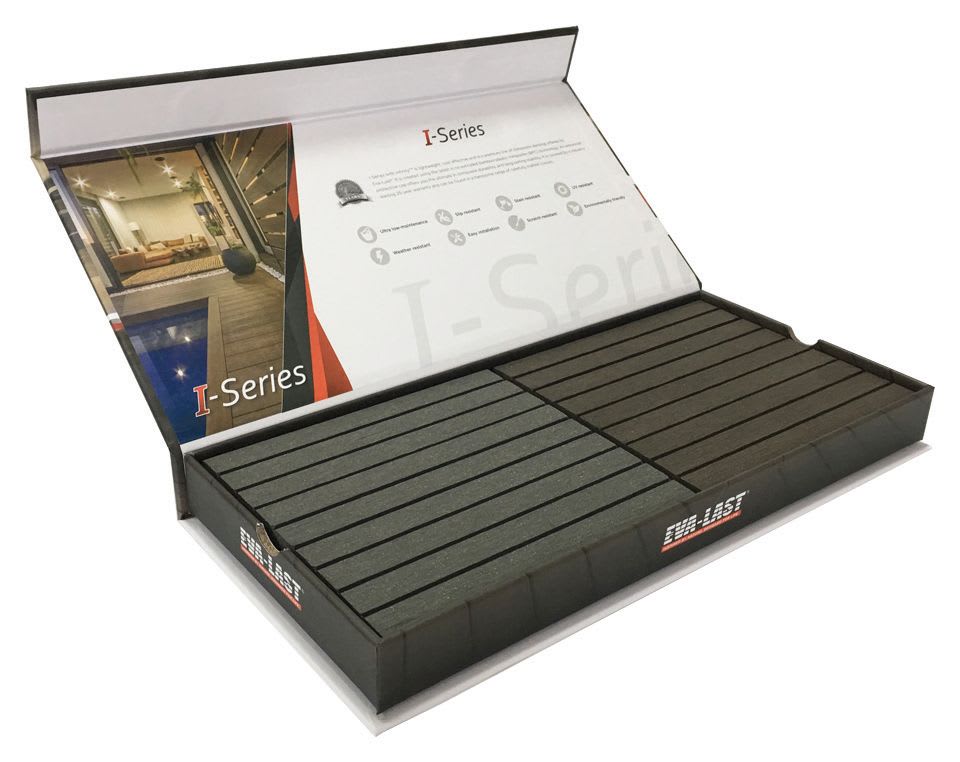 Box consists of 1 sample of each of our Eva-Tech I-Series Range Xavia & Aruna Composite Decking.