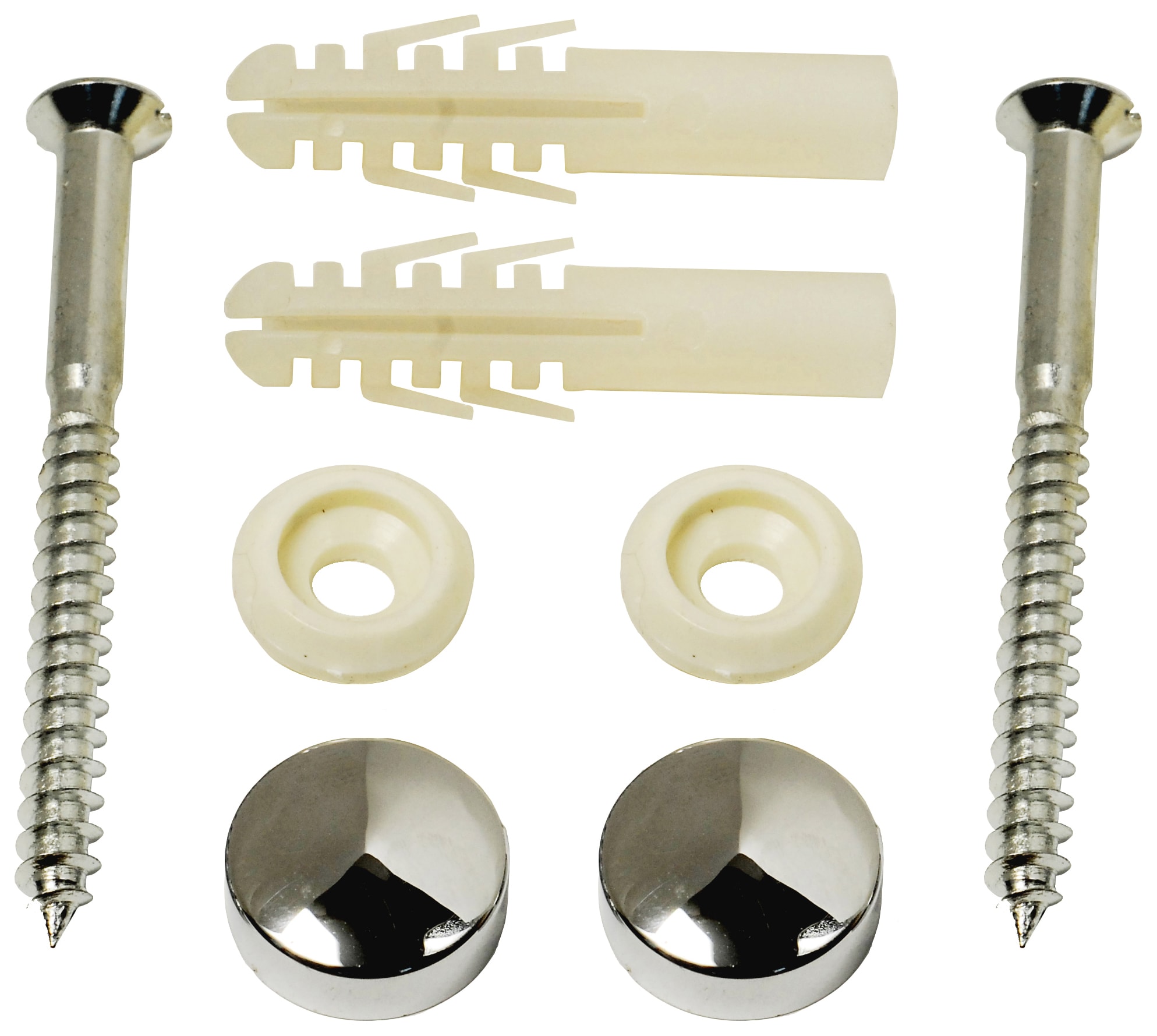 - Flat head screws with chrome effect screw covers